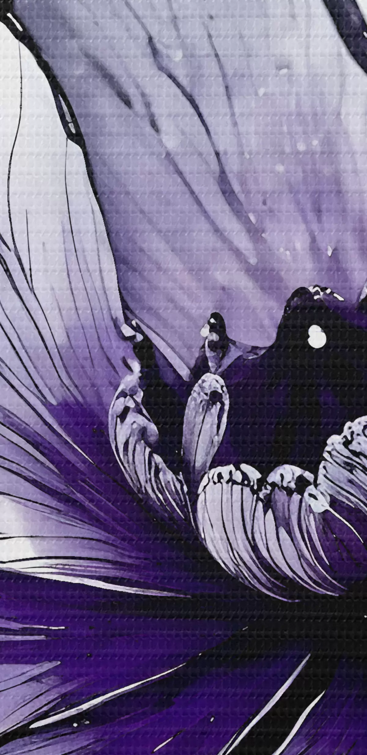 Obraz Veľký, žiarivý fialový kvet s jemnými, zložitými okvetnými lístkami na tmavom pozadí Nr. s38982