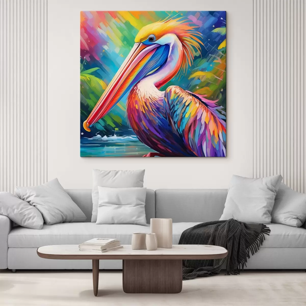 Obraz Žiarivý pelikán na farebnom pozadí Nr. s39054