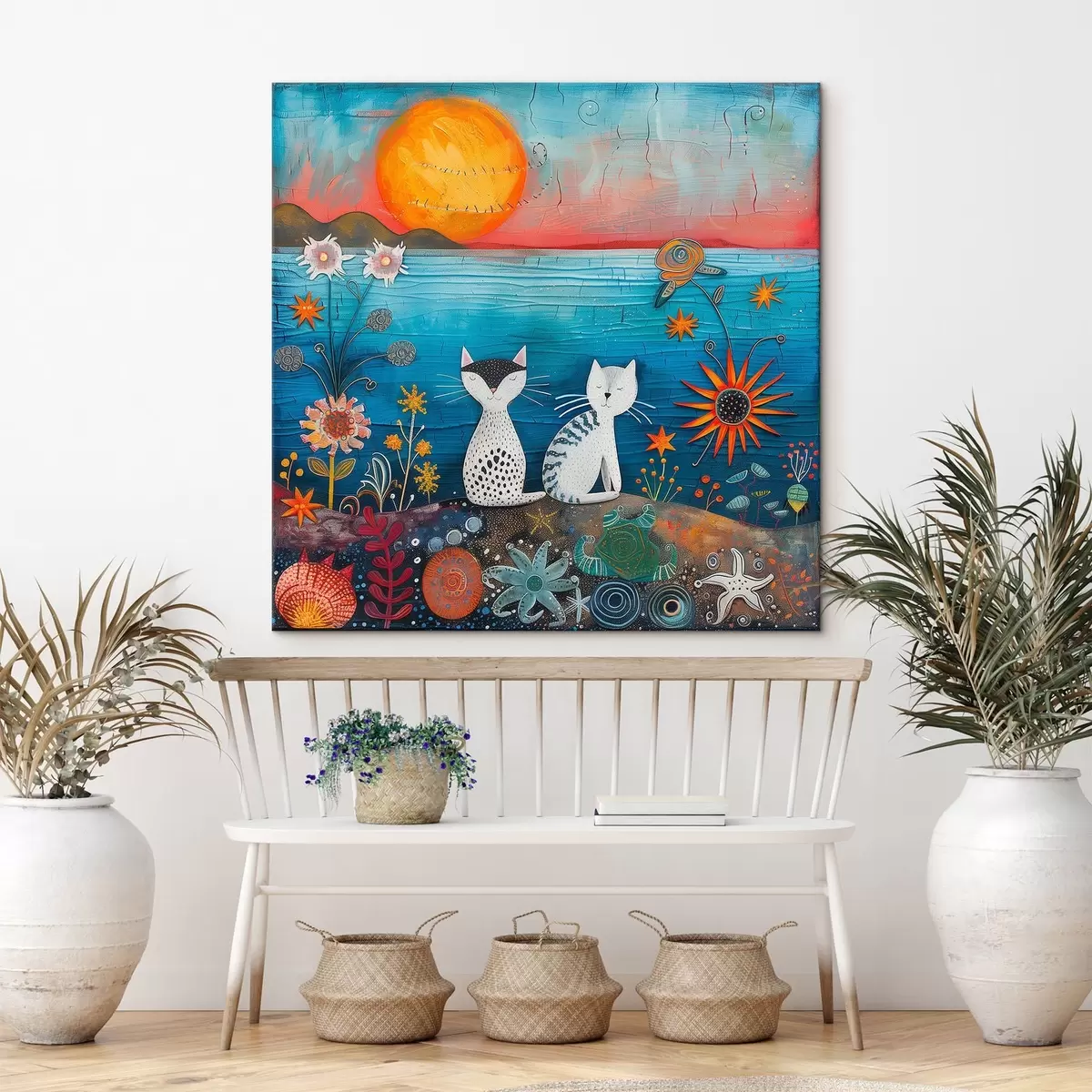 Obraz Mačky pri západe slnka, farebné kvety Nr. s39085