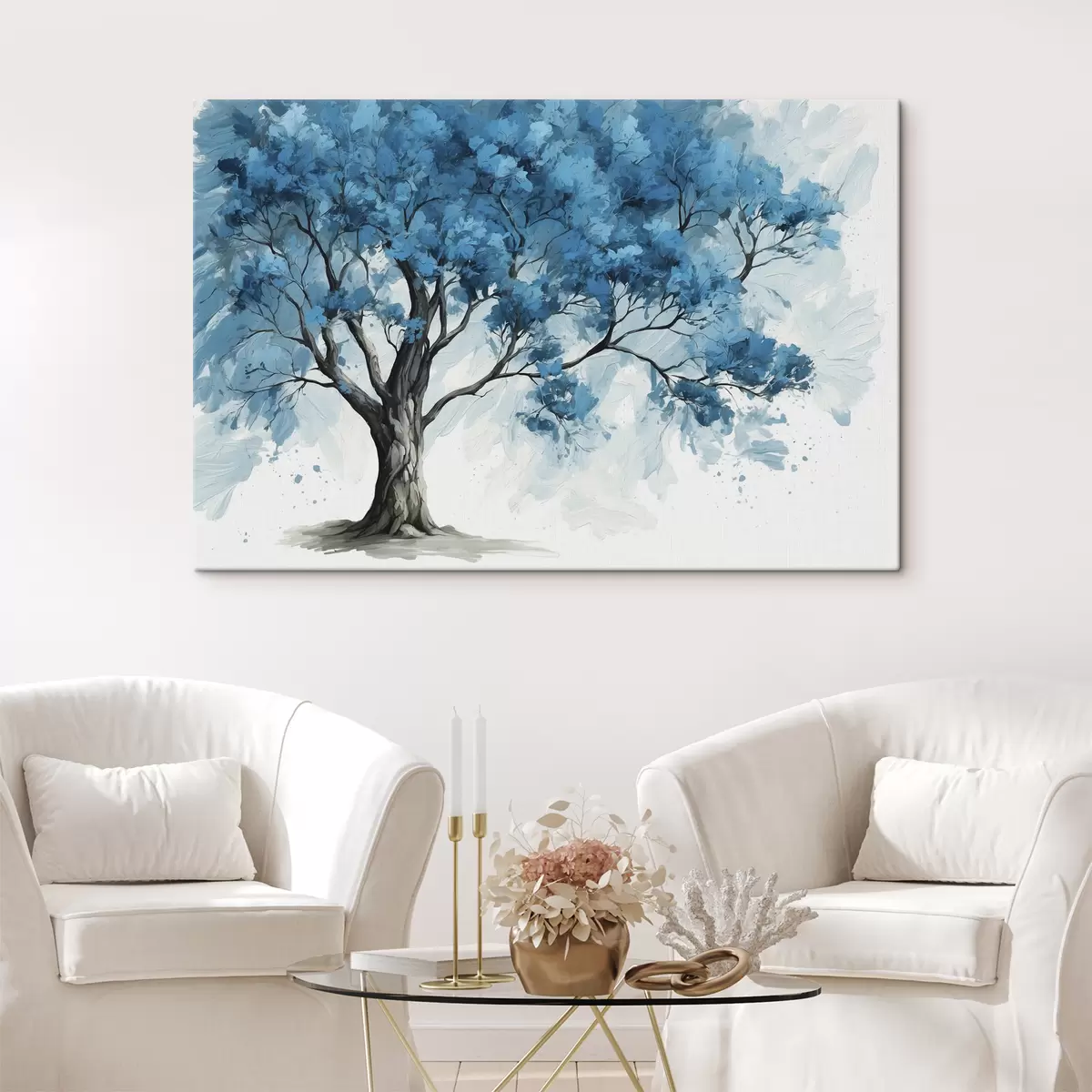 Obraz Strom s modrými listami na bielom pozadí Nr. s39153
