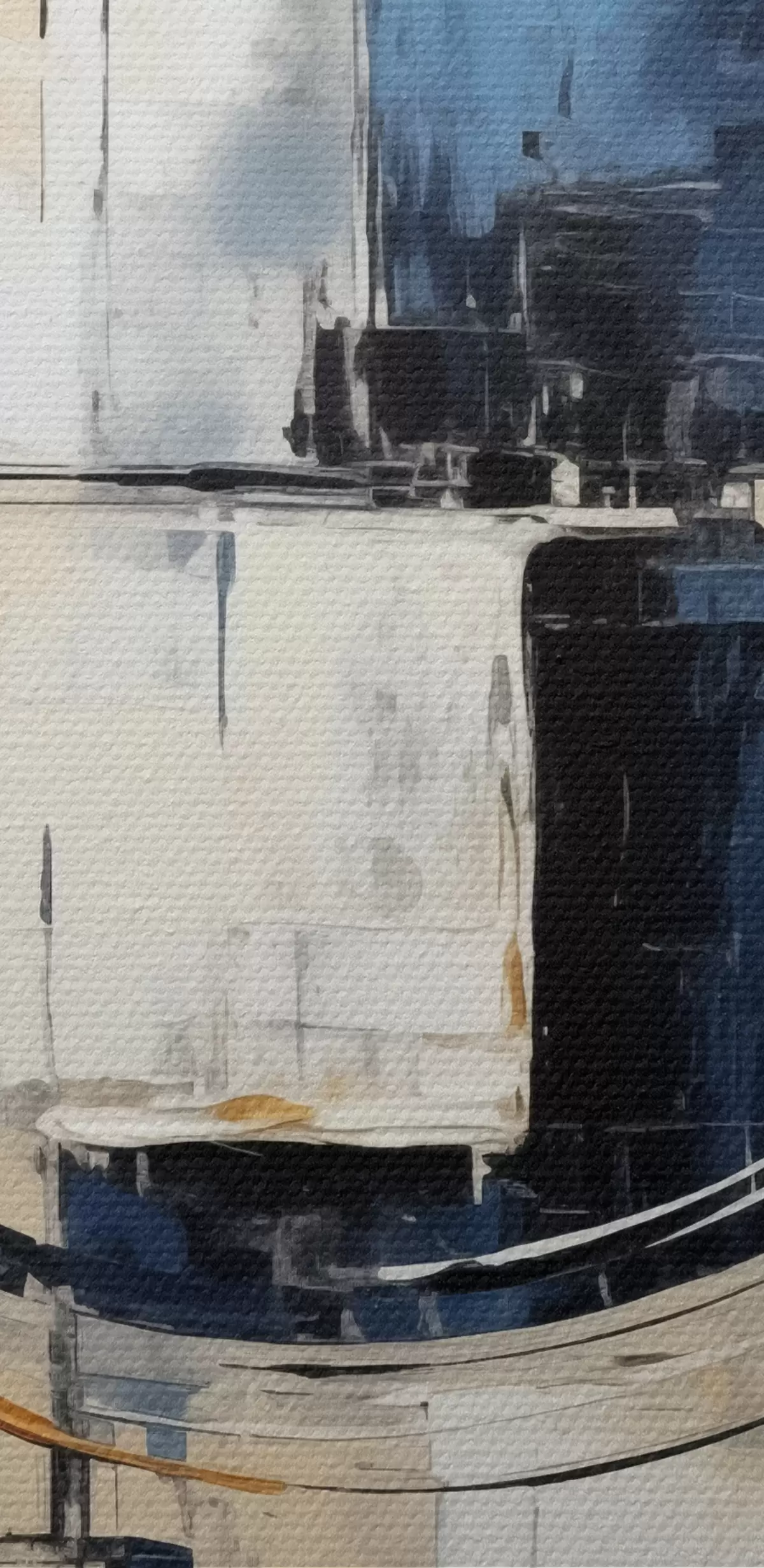 Obraz Abstraktný kubizmus, modré, oranžové, biele ťahy, kruhová postava Nr. s39179