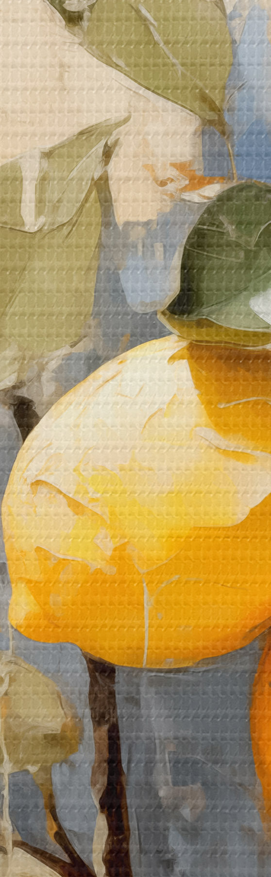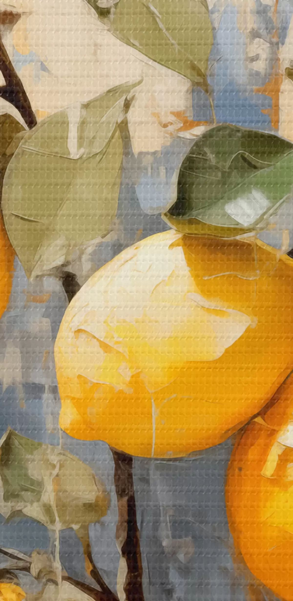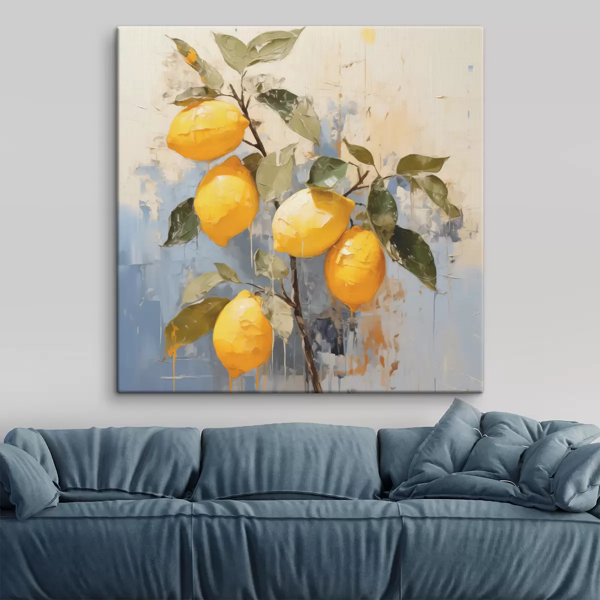 Obraz Vetva so zrelými citrónmi olejomaľba abstraktné umenie, žltá, modrá a zelená farba Nr. s39186