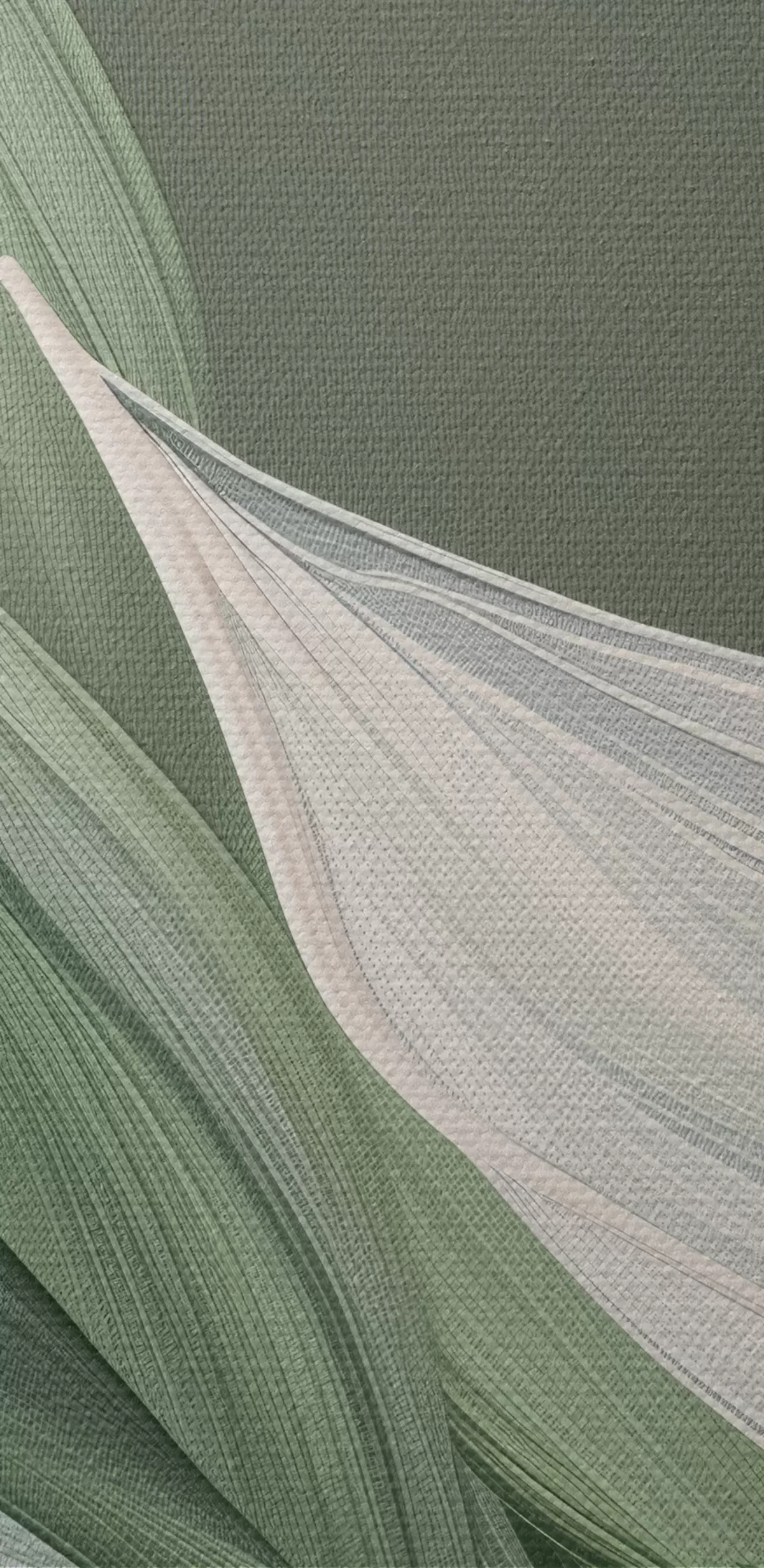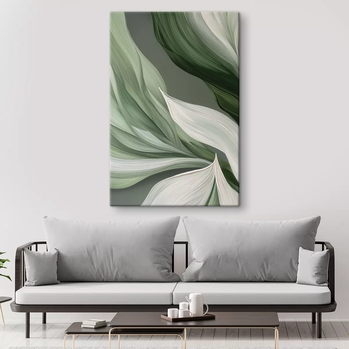 Obraz objemný abstraktný závoj v bielej a zelenej farbe Nr. s39327