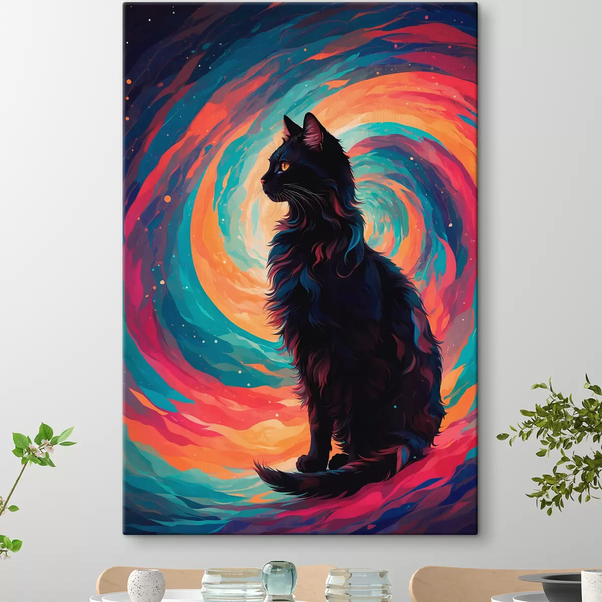 Obraz Čierna mačka na pozadí vesmíru Nr. s39370