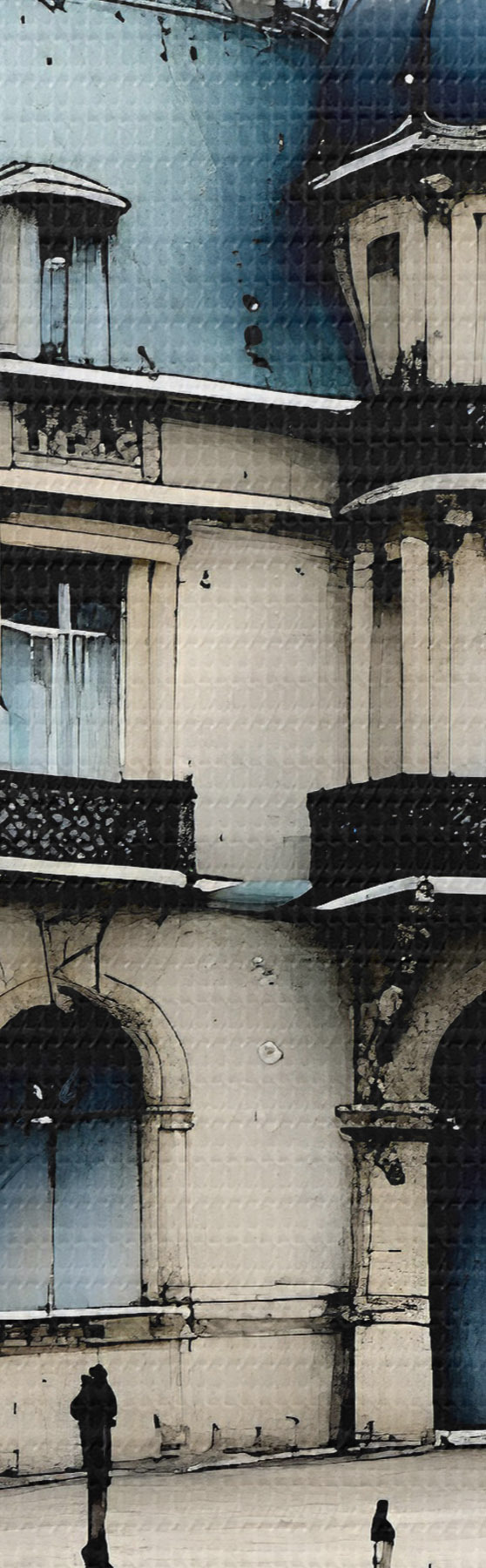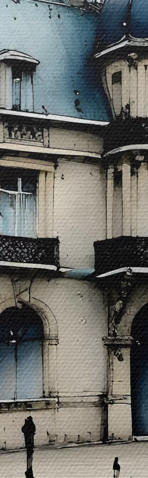 Obraz Veľkolepá budova akvarelu obklopená kandelábrmi a stromami počas daždivého dňa Nr. s39391