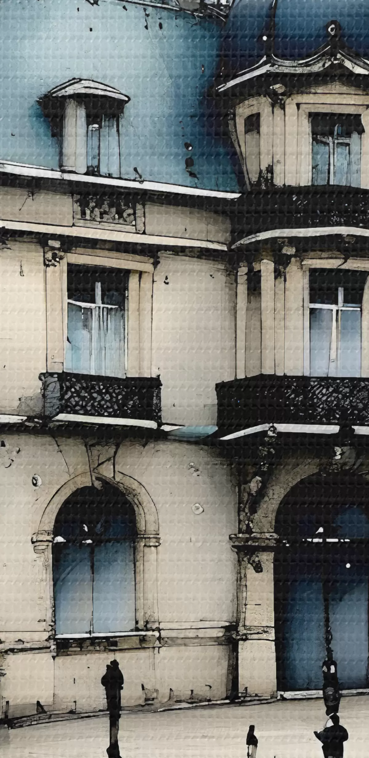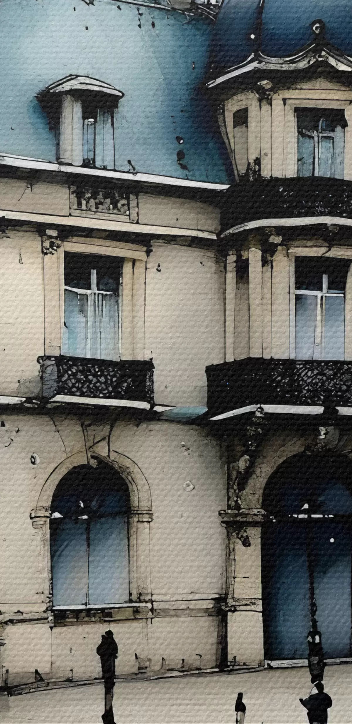 Obraz Veľkolepá budova akvarelu obklopená kandelábrmi a stromami počas daždivého dňa Nr. s39391