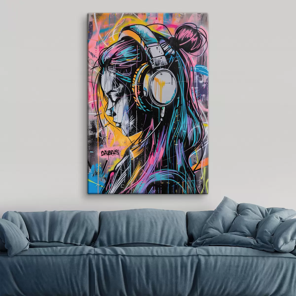 Obraz Žena so slúchadlami v štýle graffiti Nr. s39443