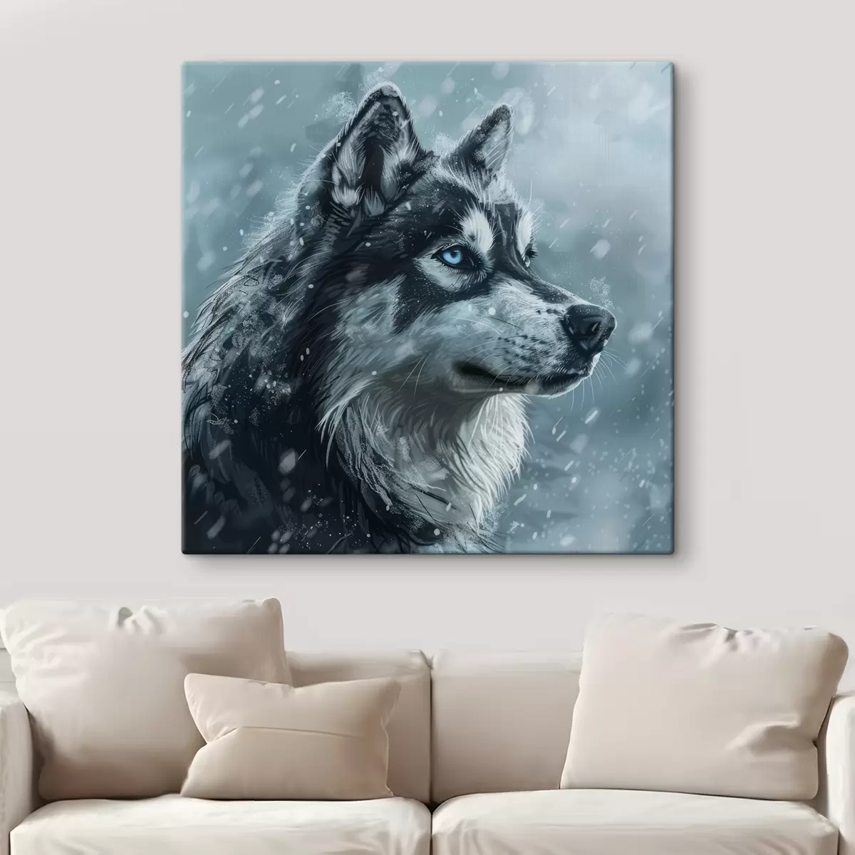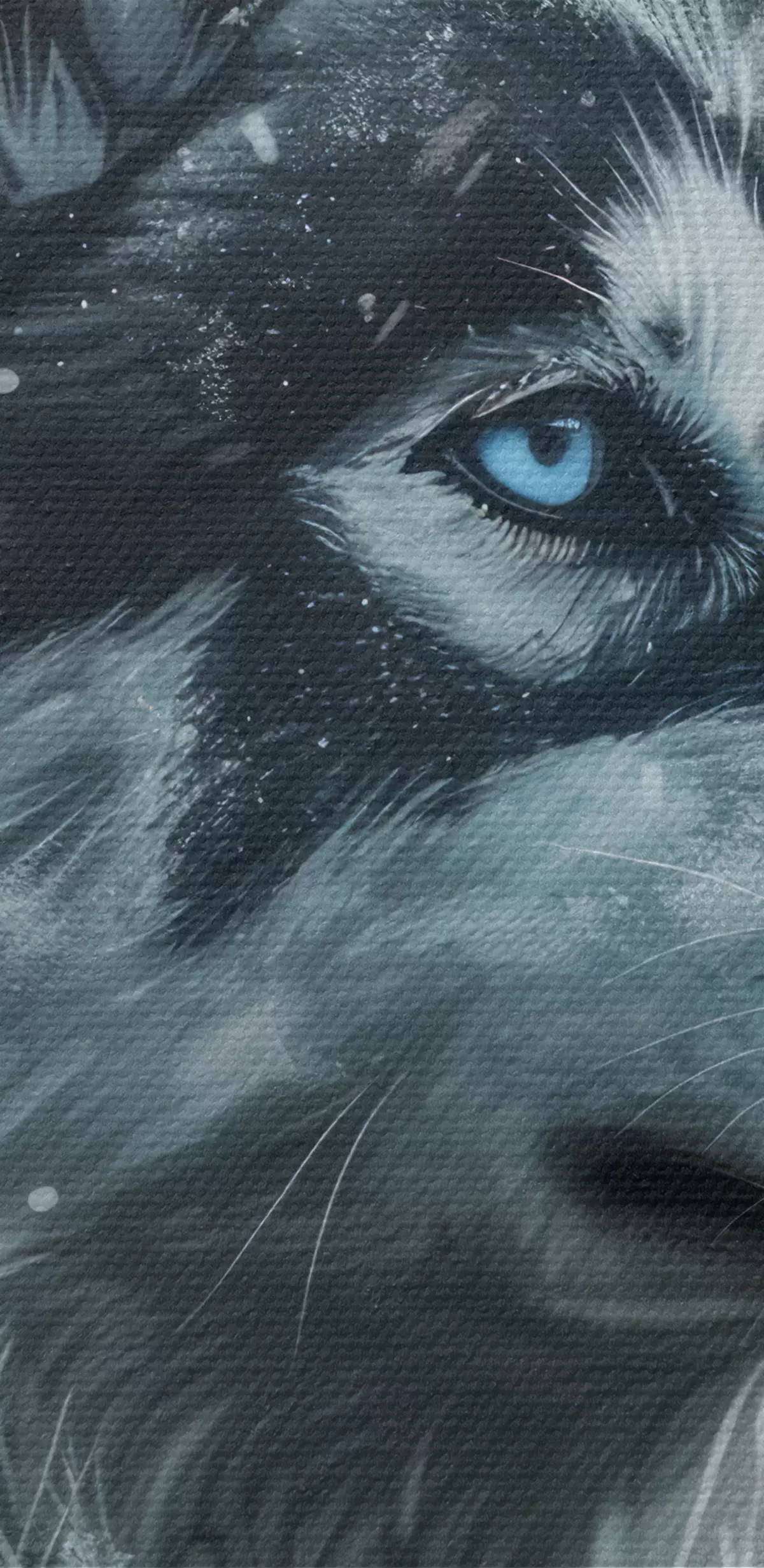 Obraz Husky s modrými očami na zimnom modrom pozadí Nr. s39462