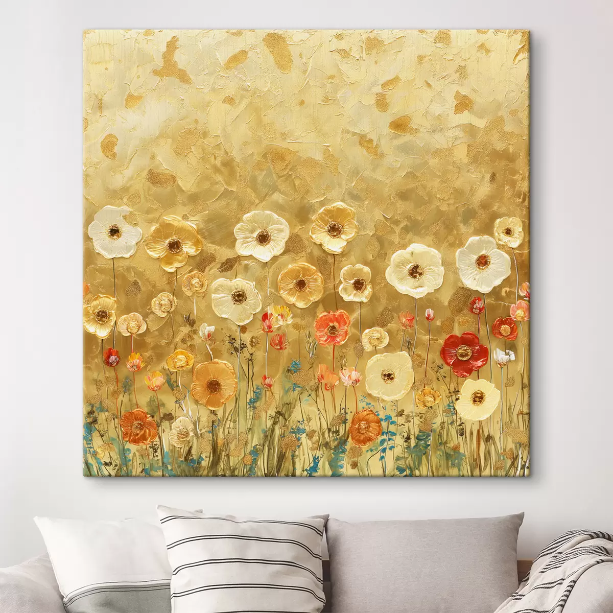 Obraz lúka v štýle klimt: jemné pastelové kvety s textúrou roztaveného Nr. s39464