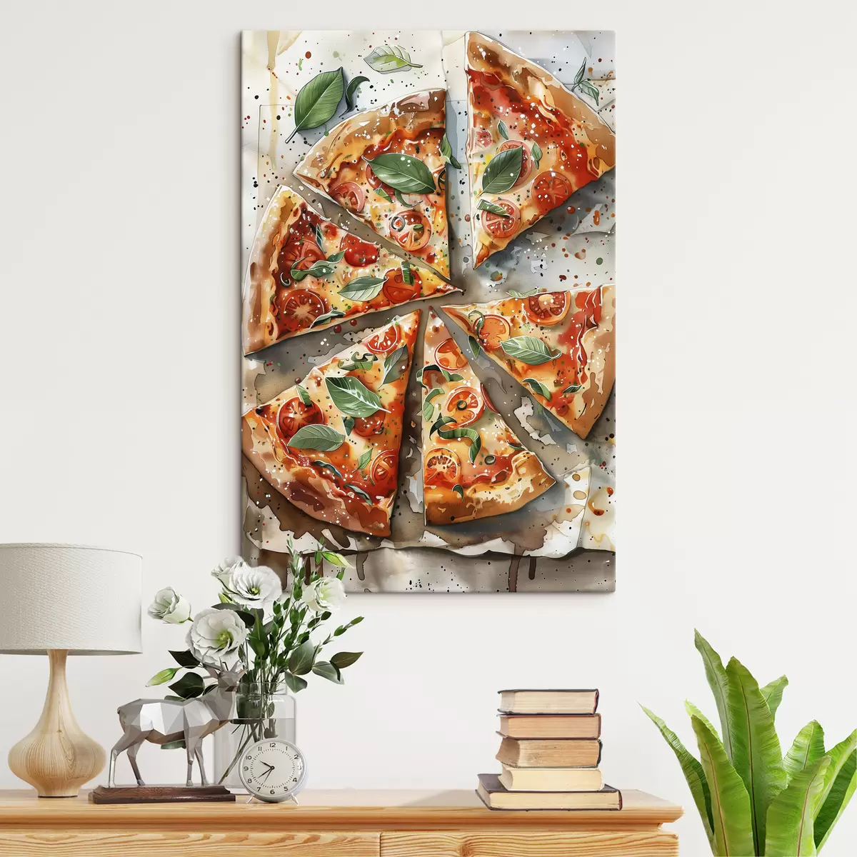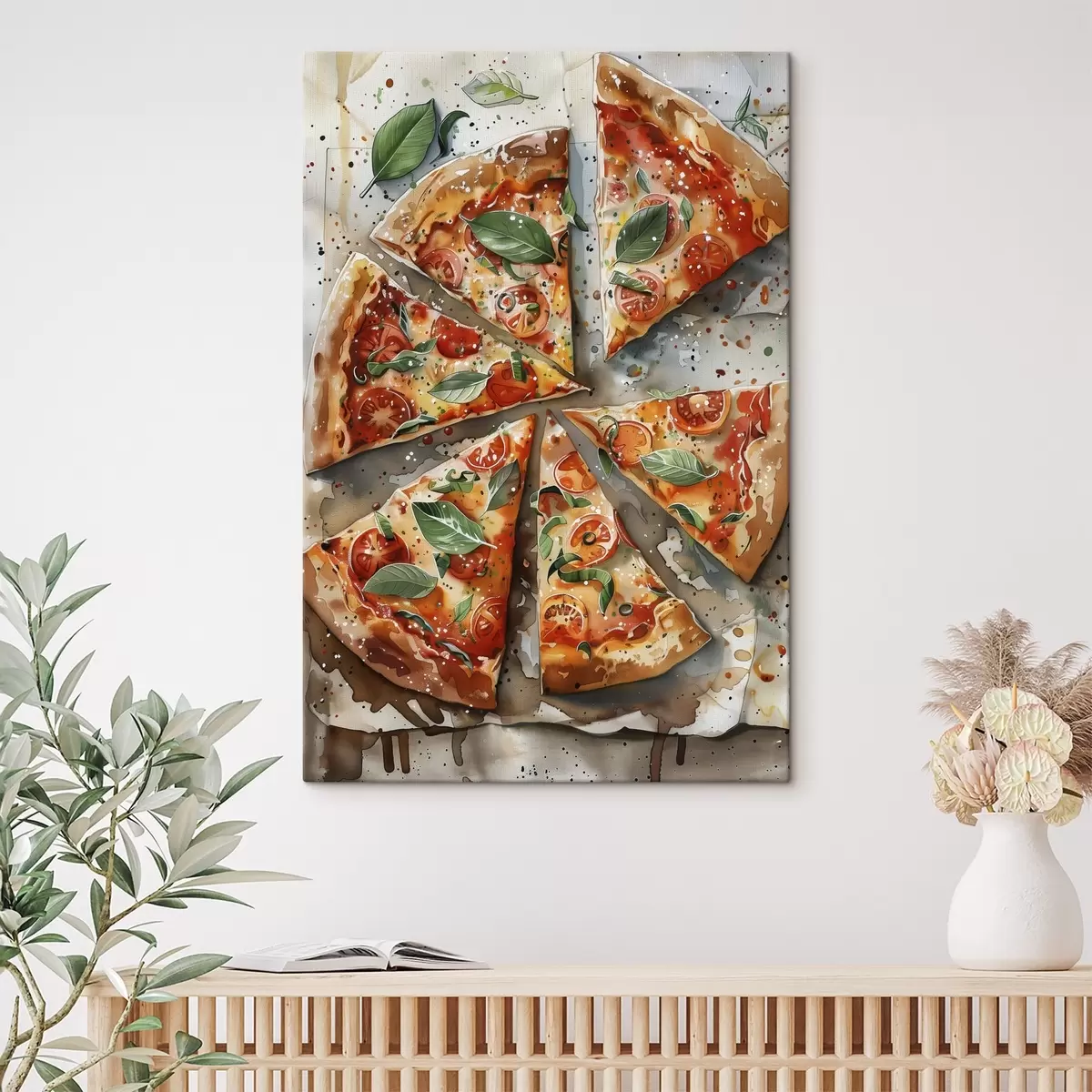 Obraz Vynikajúca talianska pizza, akvarelové jedlo, margarita, paradajky Nr. s39703