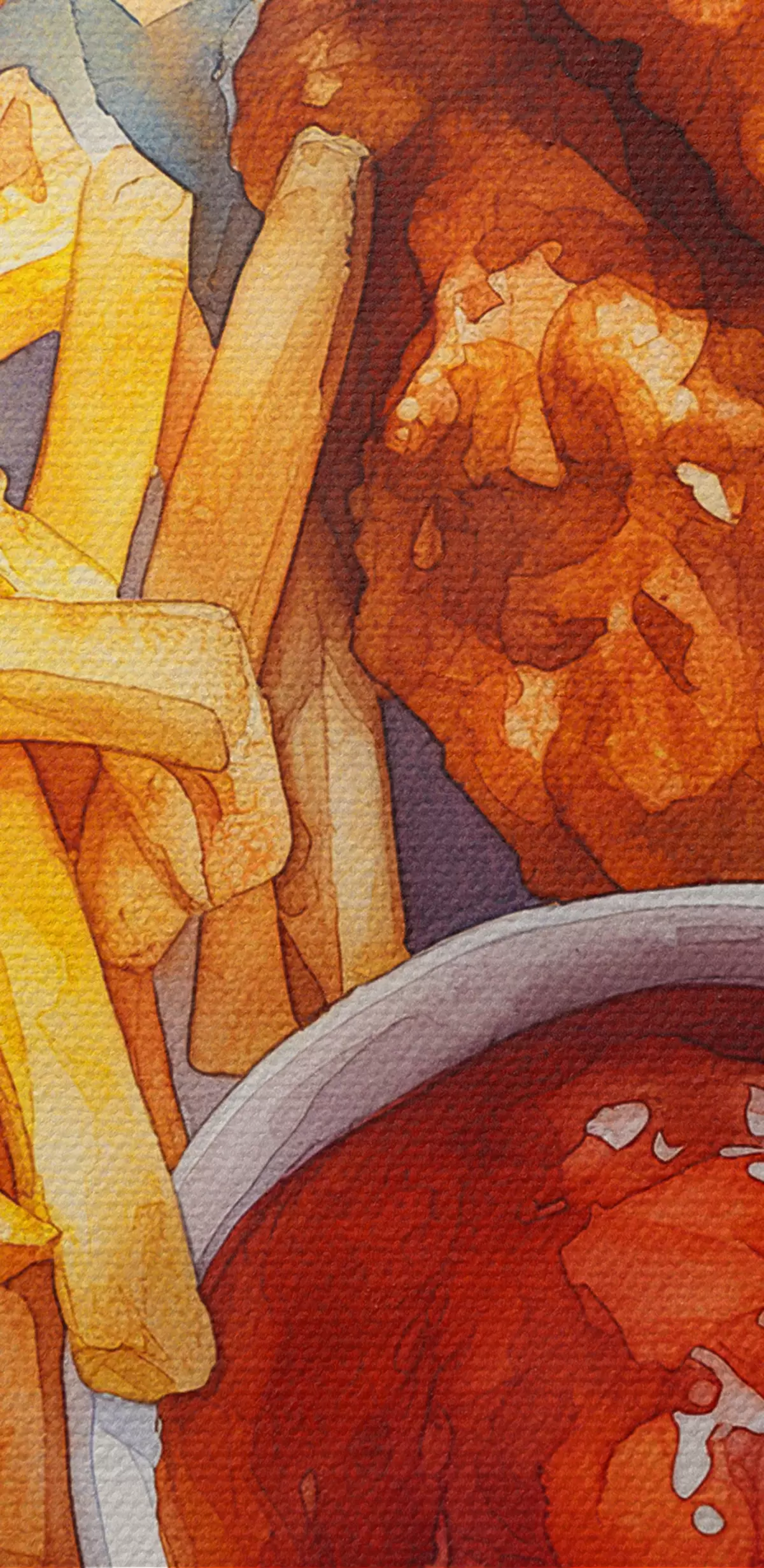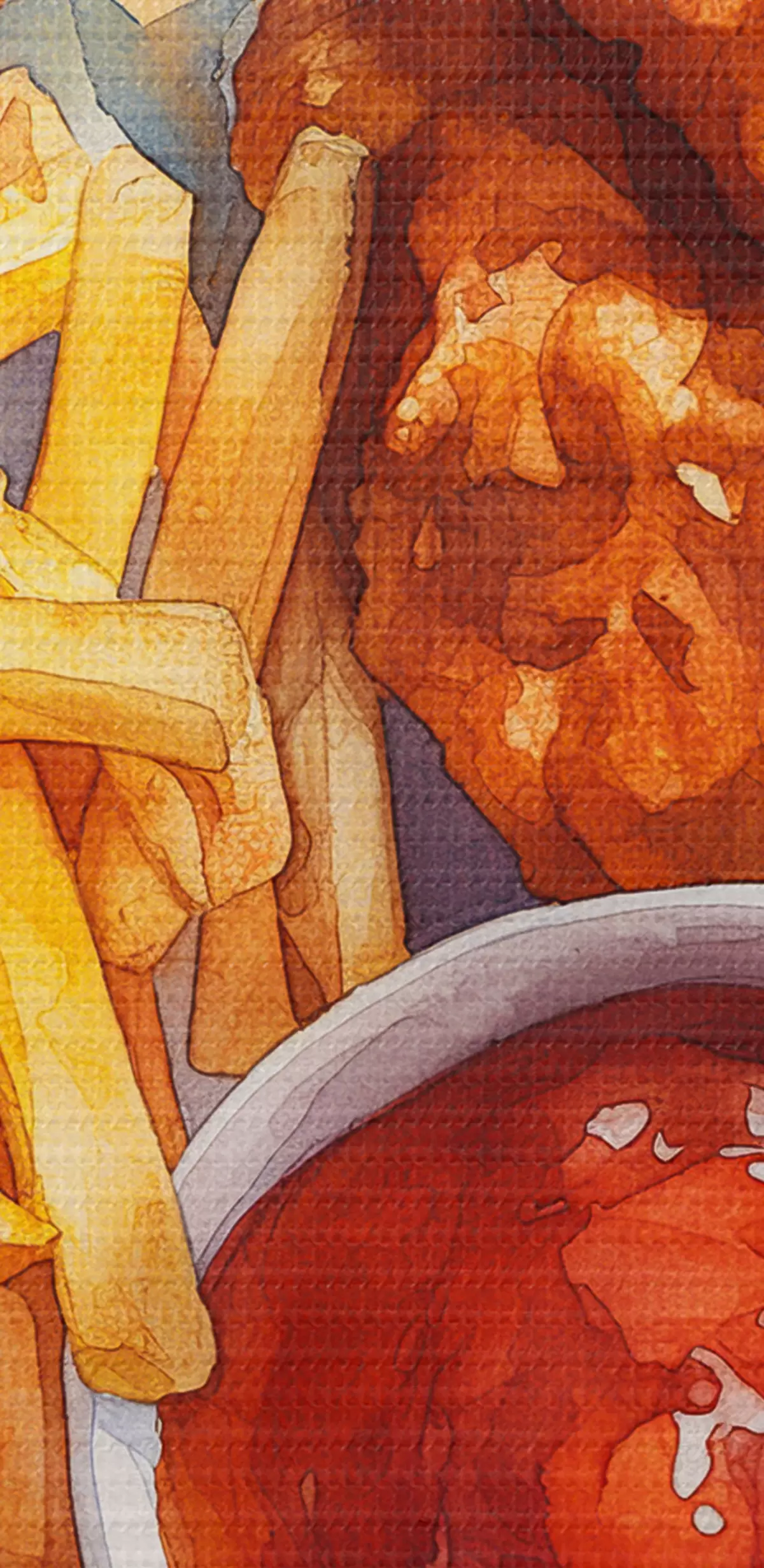 Obraz Akvarelové pouličné jedlo, hranolky s pečeným kuracím mäsom, chutné Nr. s39709