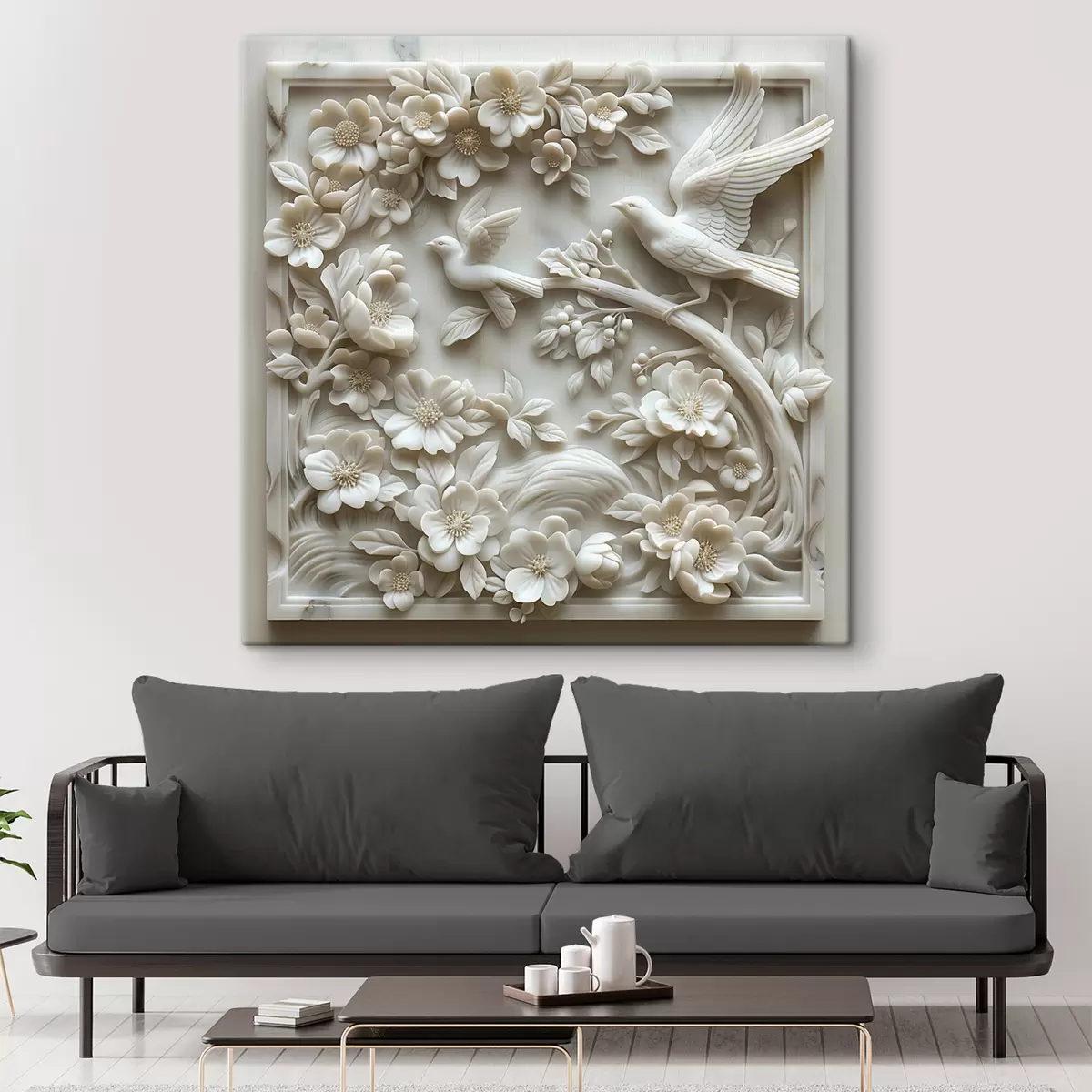 Obraz Záhrada z bieleho mramoru s reliéfom vtákov a kvetov Nr. s39728