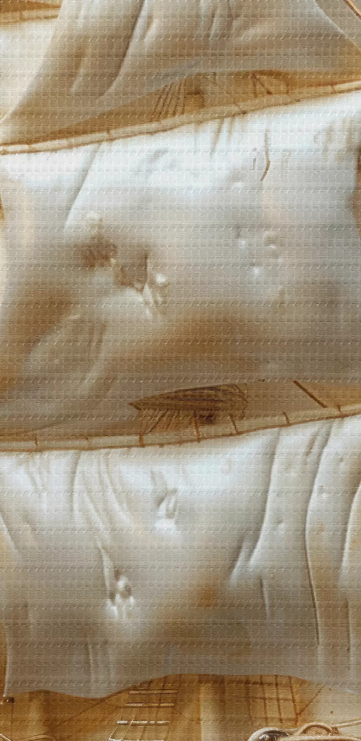 Na natiahnutie plátna na nosidlá bez poškodenia obrazu používame zrkadlový obraz.