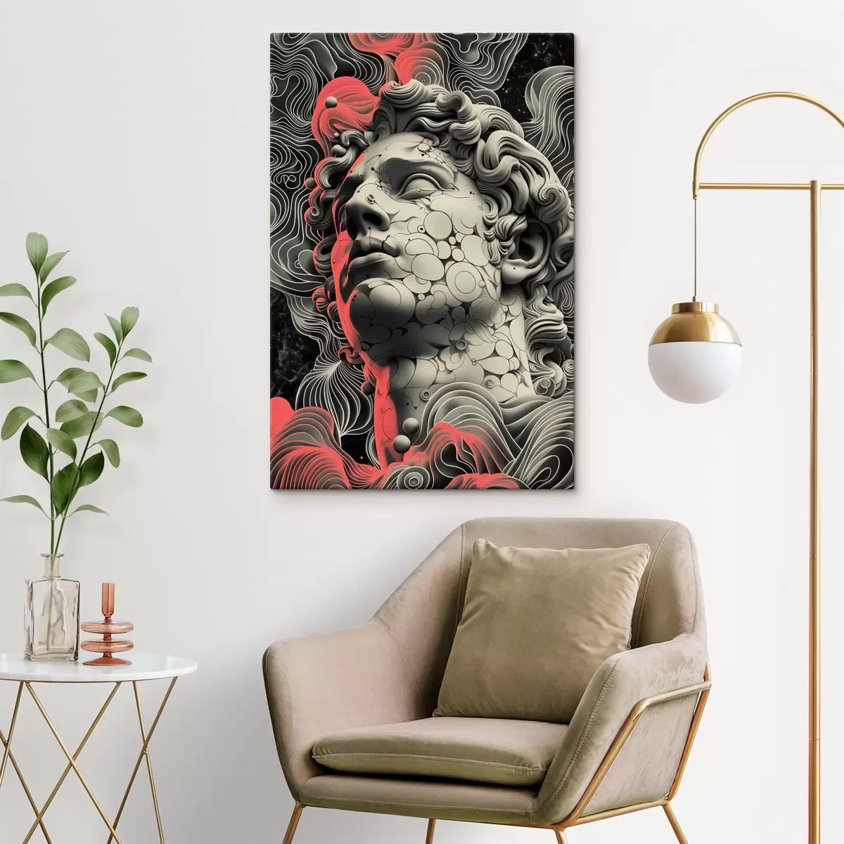 Obraz Čiernobiela lineárna ilustrácia hlavy gréckeho boha Apolóna v štýle pop art Nr. s39763