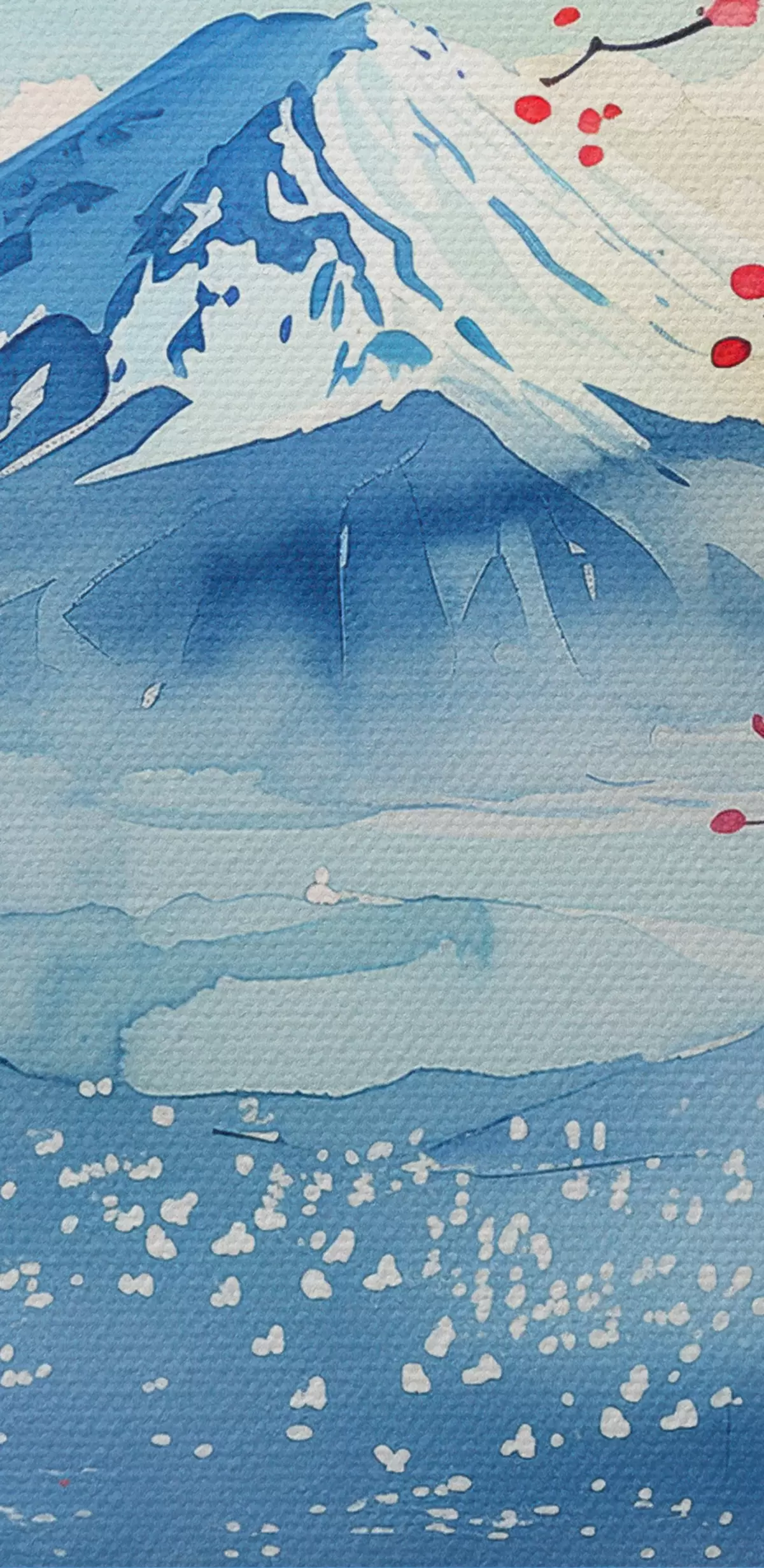 Obraz Horská krajina Fuji, orientálna príroda, čerešne, západ slnka Nr. s39775
