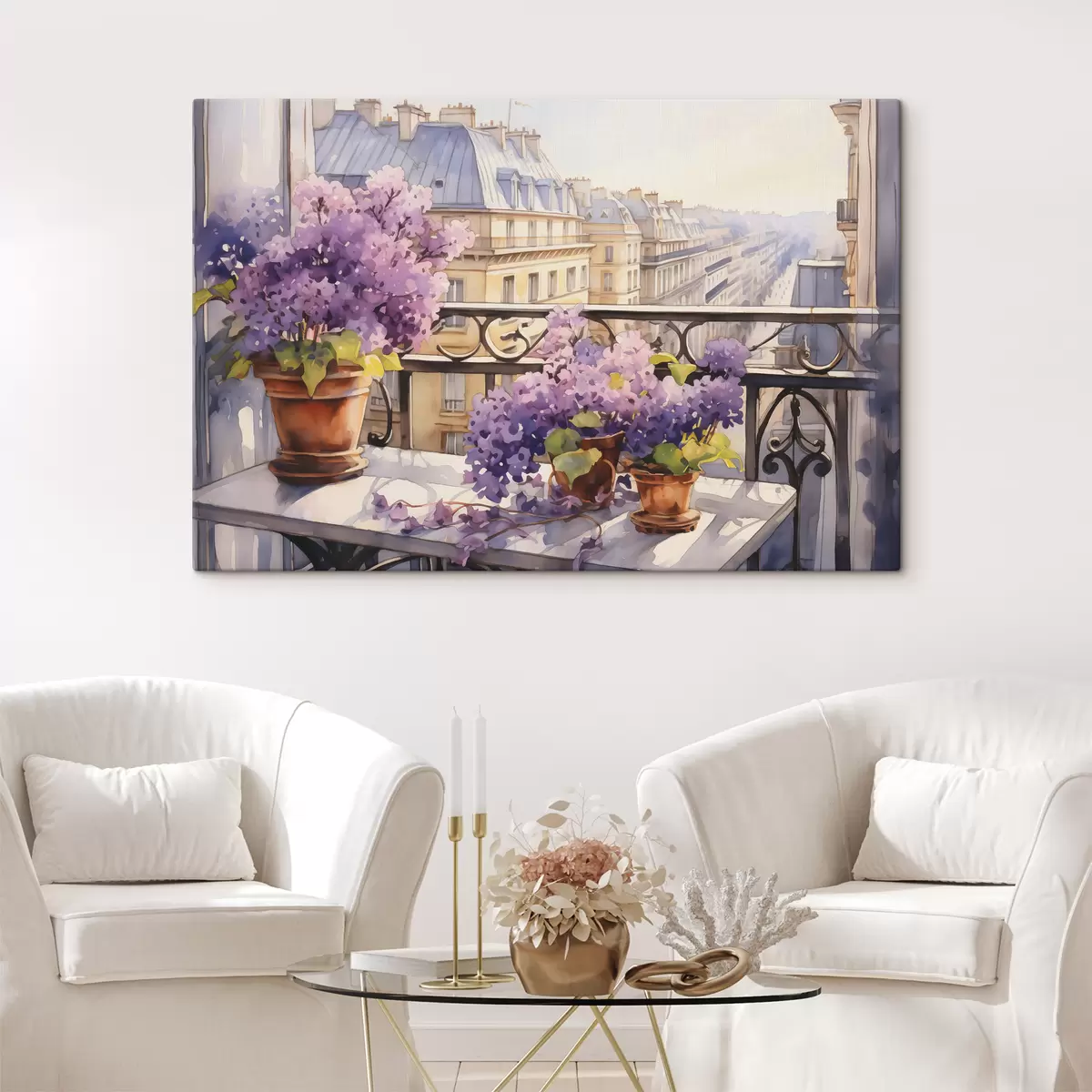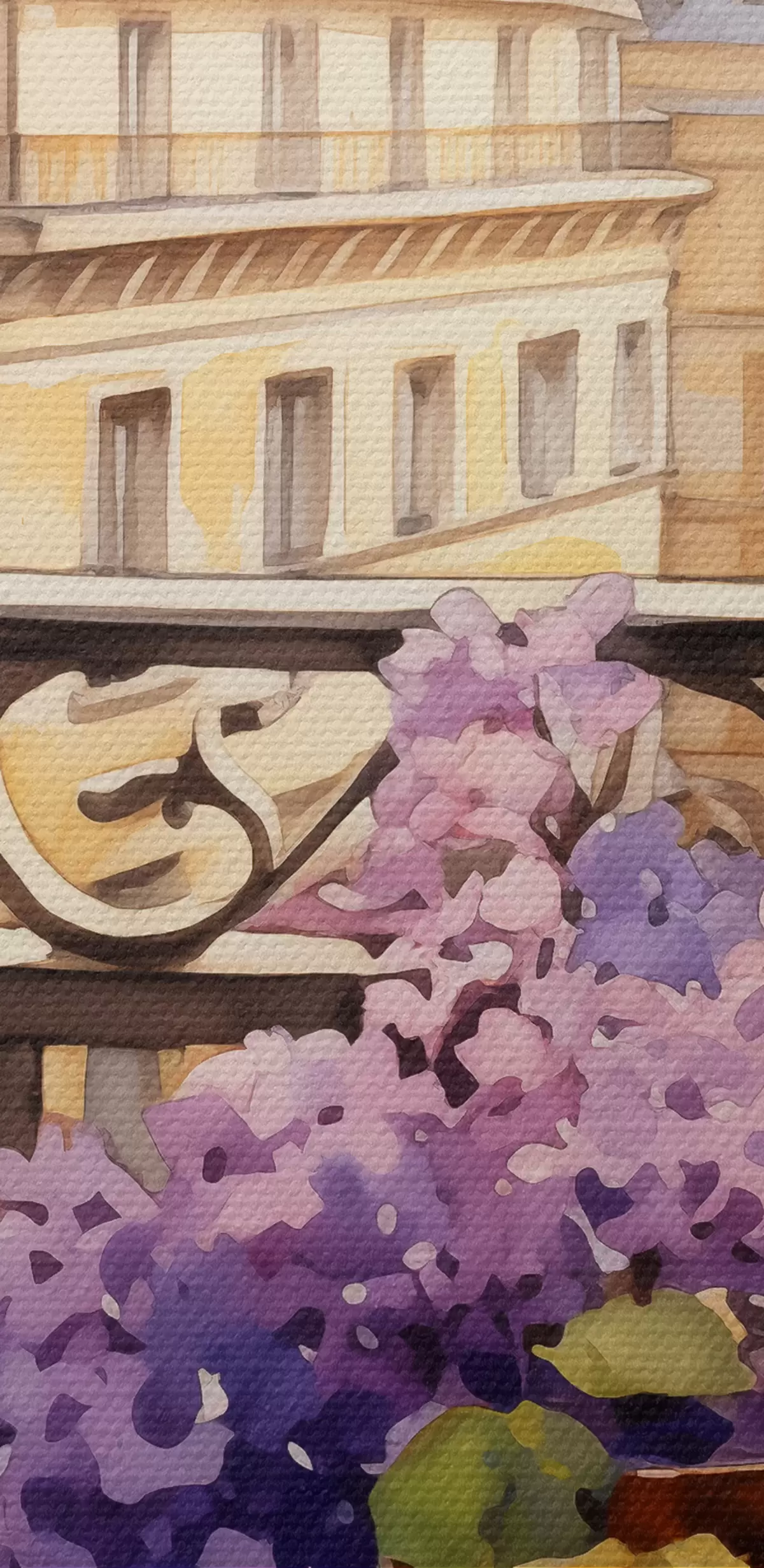 Obraz Fialky v kvetináči na balkóne v parížskom akvarele Nr. s39931