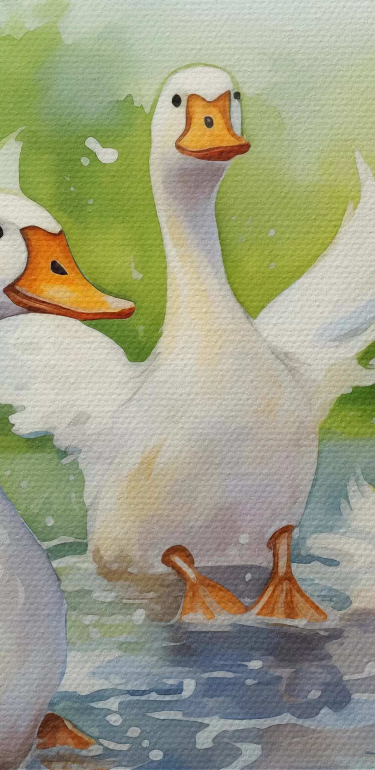 Obraz Biele husi kúpajúce sa v jazierku akvarelom Nr. s39939