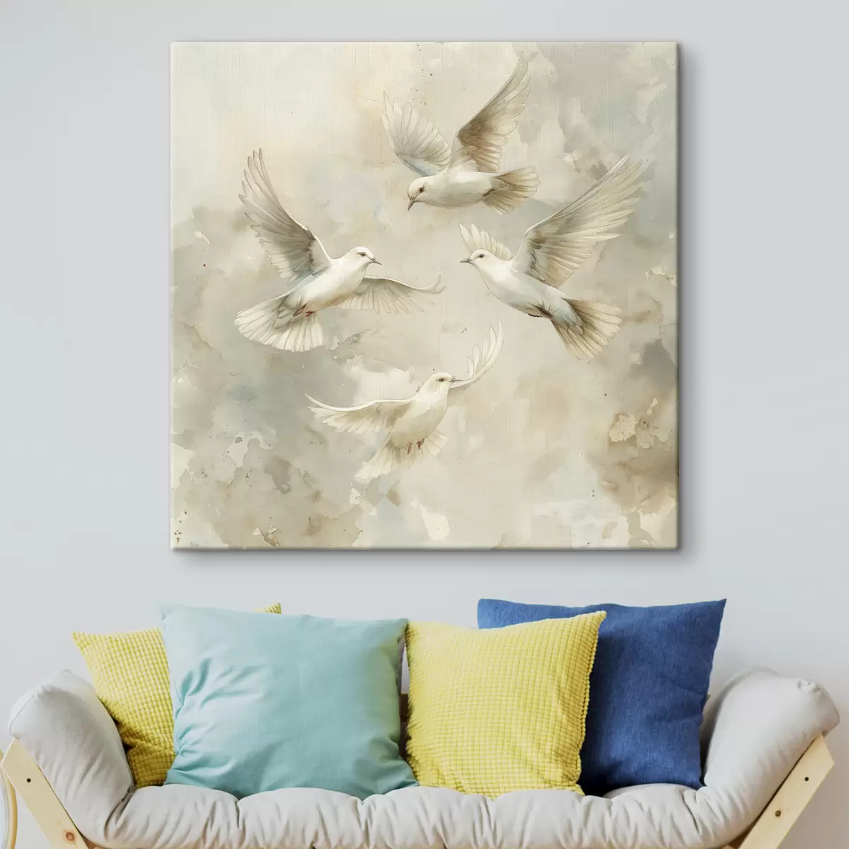 Obraz Akvarelové lietajúce vtáky, jemné béžové a biele farby, holuby Nr. s39976