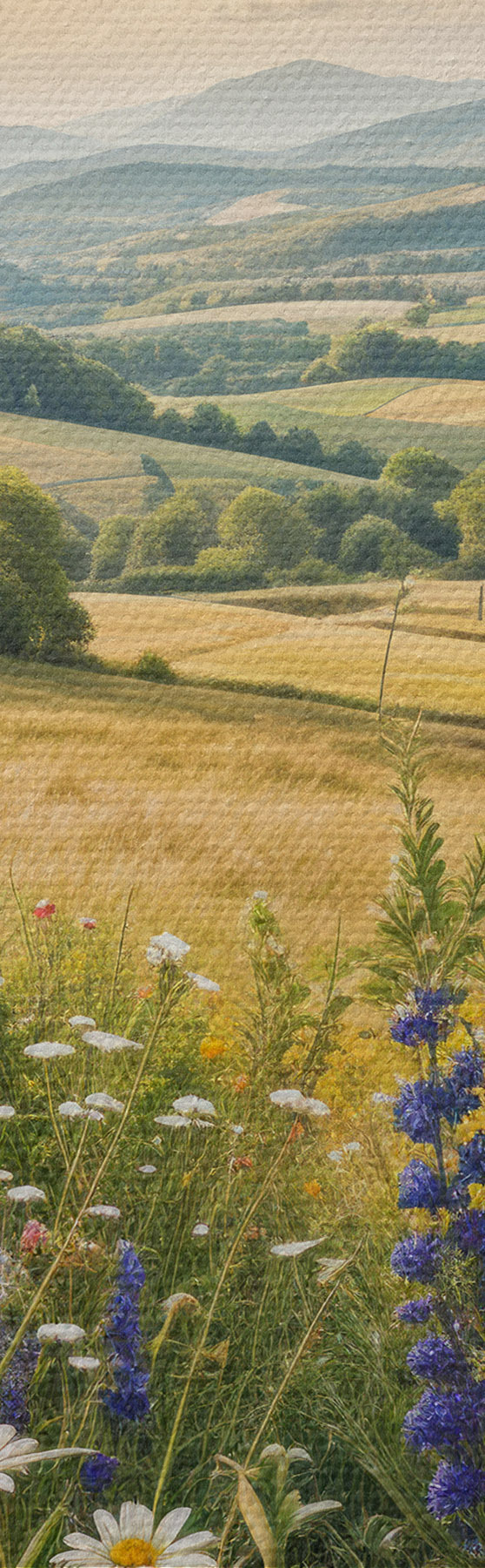 Obraz Svieža vidiecka krajina so živou poľnou lúkou plnou farebných kvetov pod zamračenou oblohou Nr. s40018