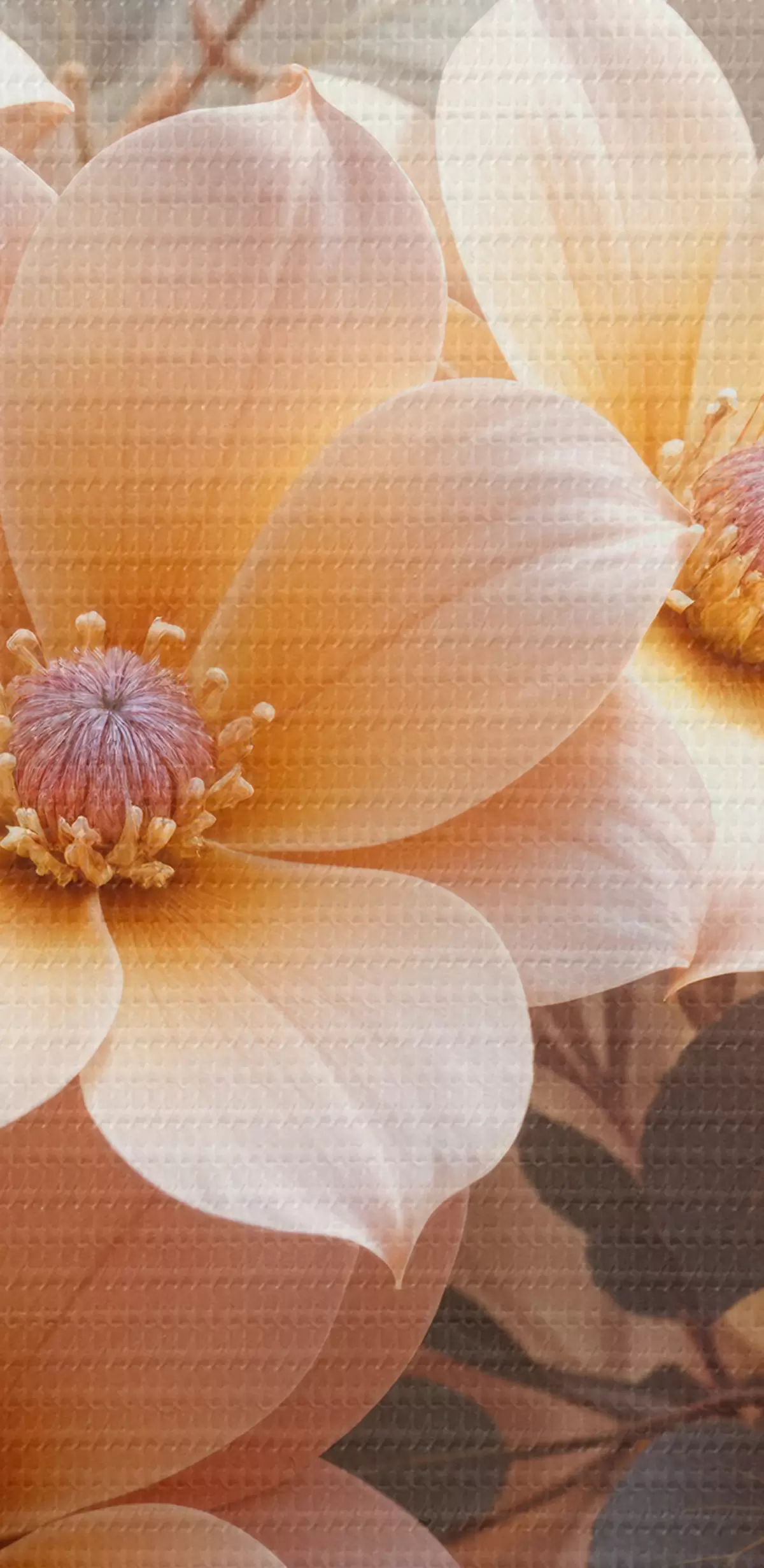 Obraz Jemné kvety georgín broskyňovej farby v plnom kvete s mäkkými okvetnými lístkami na rozostrenom pozadí Nr. s40024