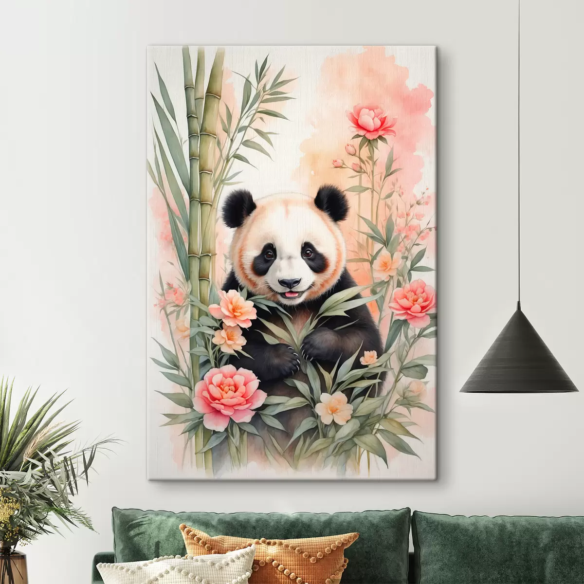 Obraz Panda s kvetmi a bambusom Nr. s40125