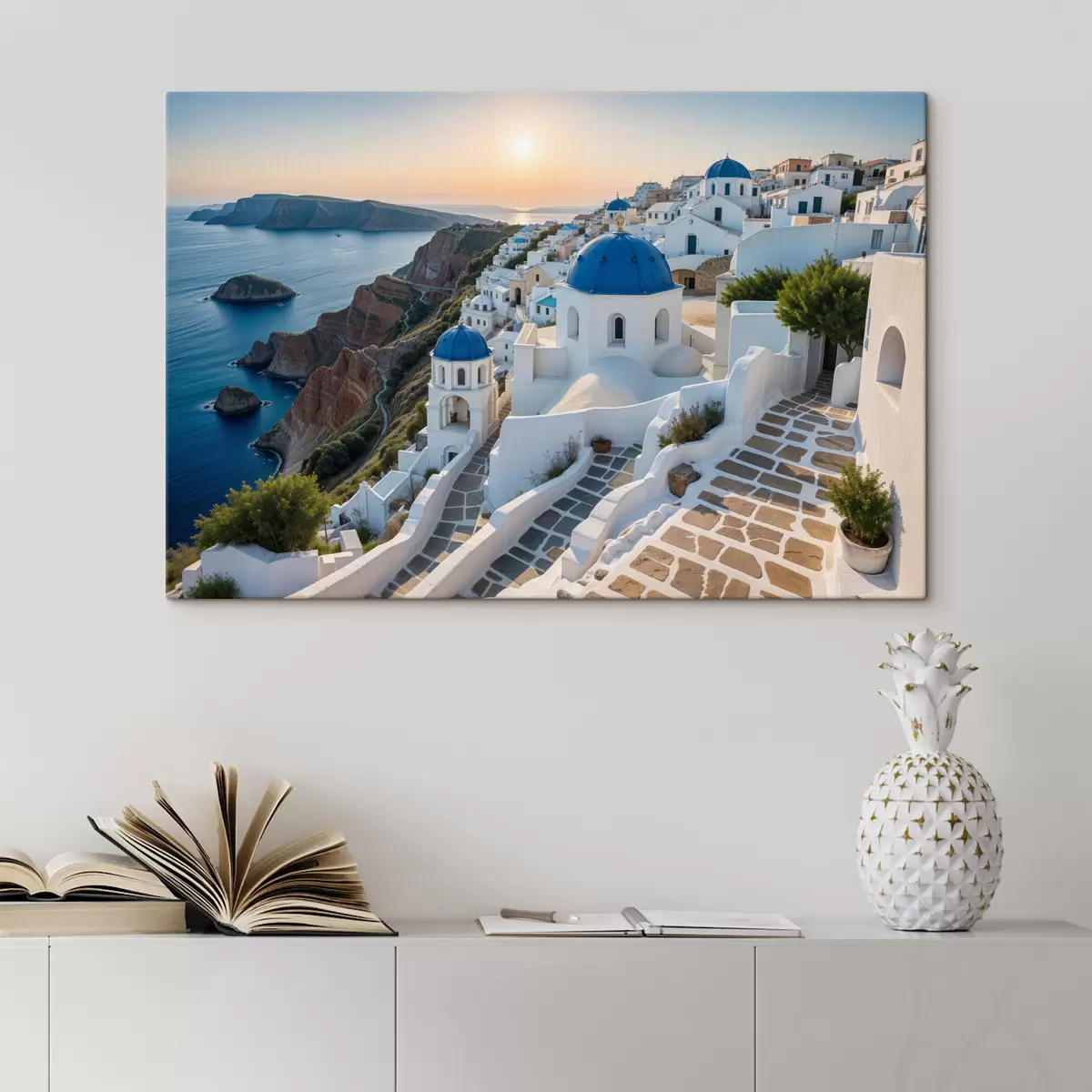 Obraz Ostrov Santorini, Grécko. Mesto je postavené na svahu s výhľadom na Egejské more Nr. s40160