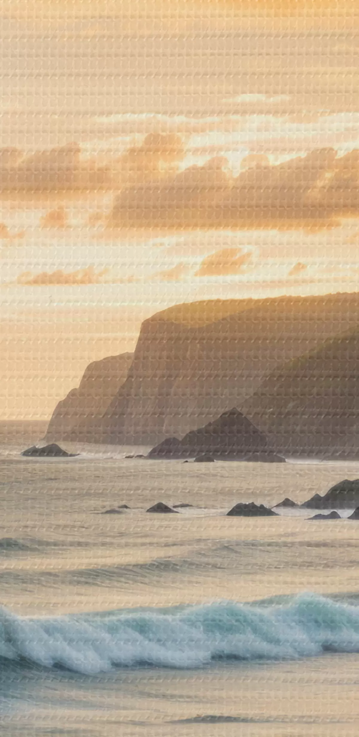 Obraz Malebná pobrežná krajina s dramatickými útesmi, burácajúcimi vlnami a farebnou oblohou pri západe slnka Nr. s40176
