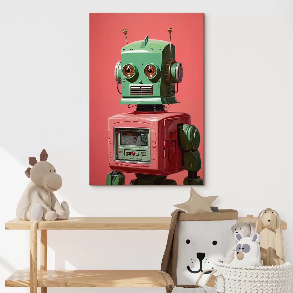 Obraz Android robot so zelenou hlavou na ružovom pozadí Nr. s40314