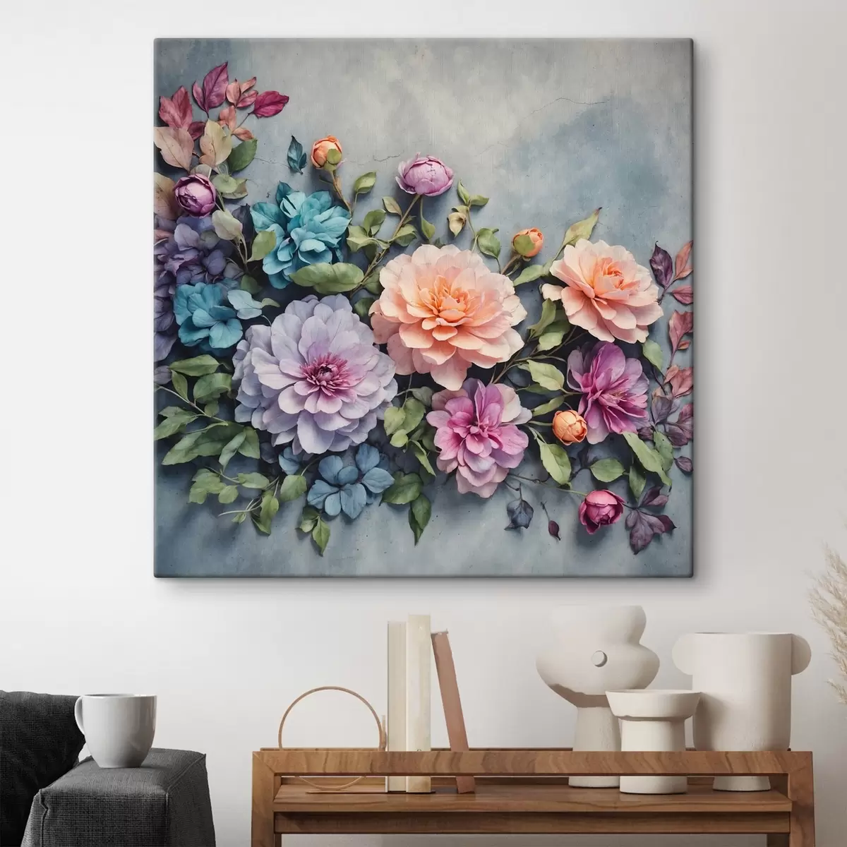 Obraz Kvety a listy na modrom pozadí Nr. s40346