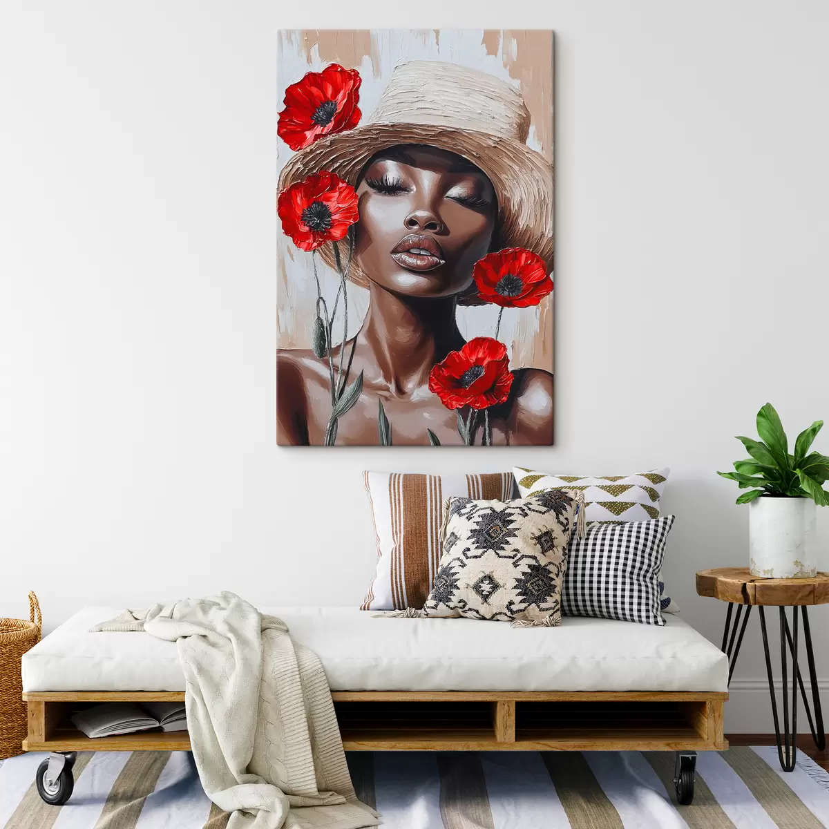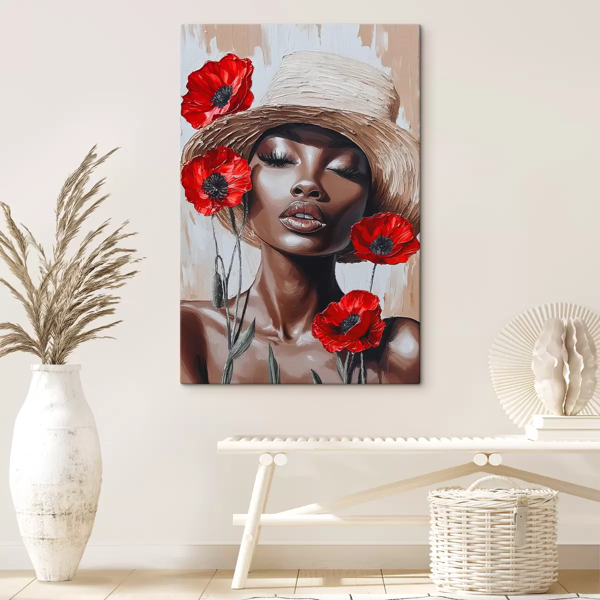 Obraz Portrét ženy v klobúku s červenými makmi Nr. s40350