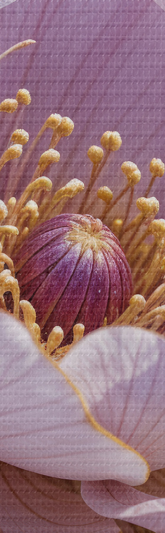 Obraz Detailný záber na veľký, svetloružový kvet pivonky s jemnými okvetnými lístkami a jasne žltým stredom Nr. s40384