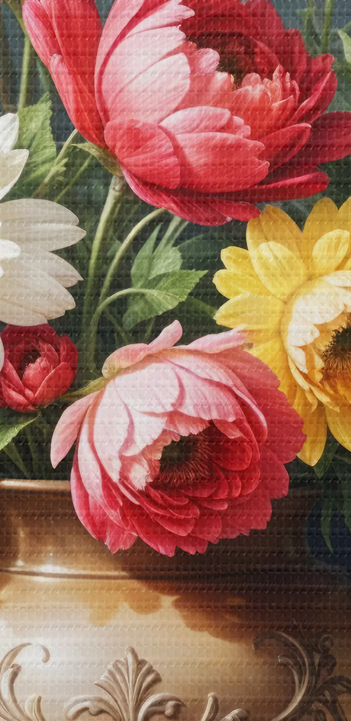 Obraz Živá maľba kytice farebných kvetov vrátane červených ruží, žltých narcisov a bielych sedmokrások Nr. s40395
