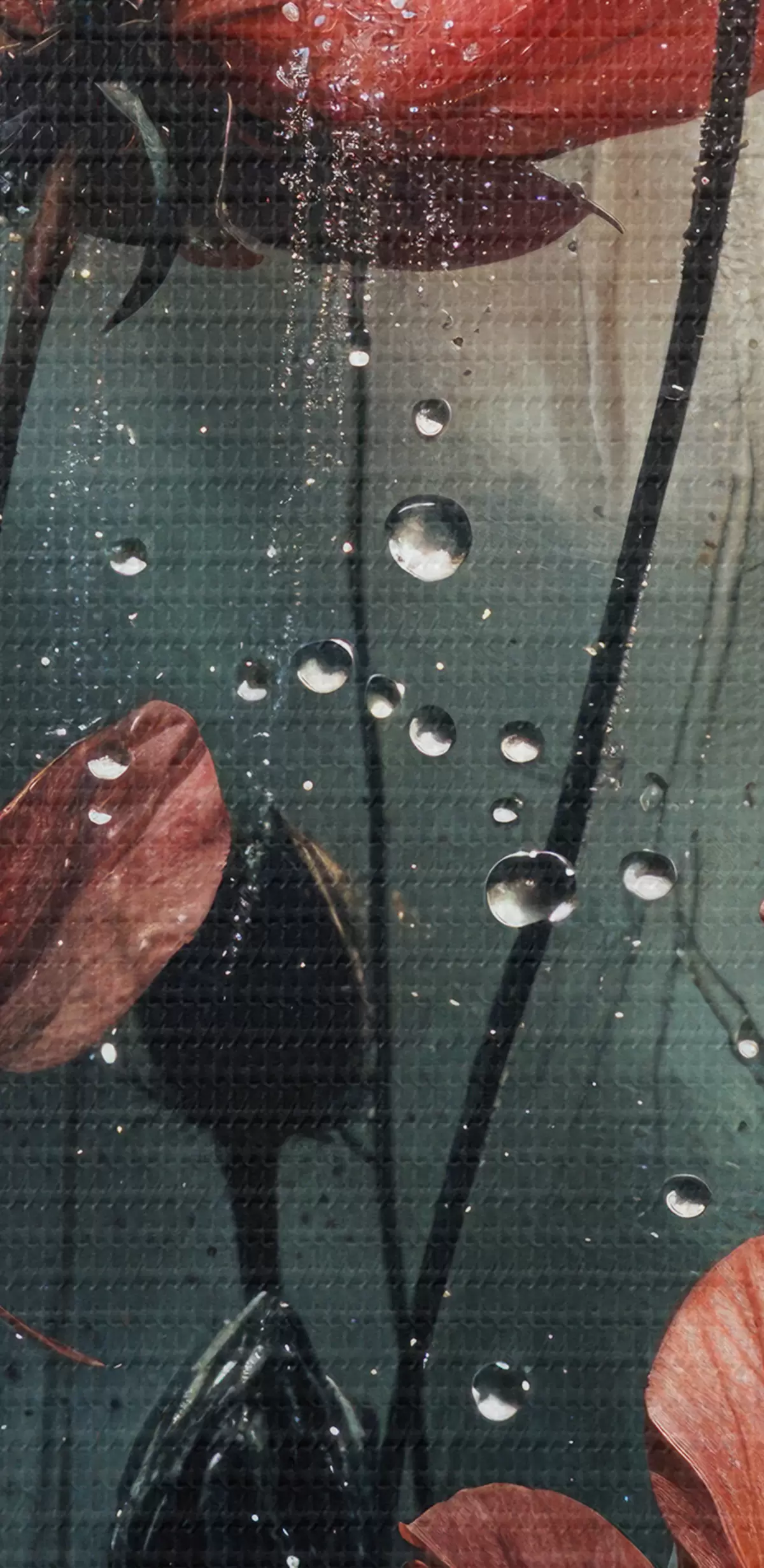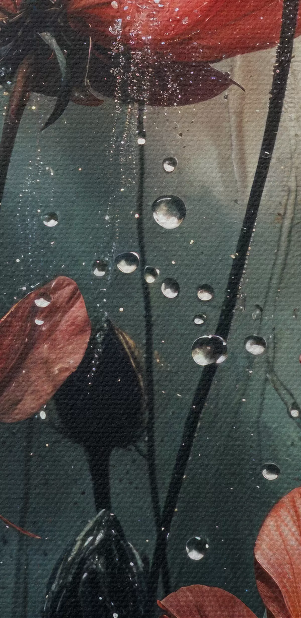 Obraz Červené kvety s kvapkami vody na rozmazanom pozadí Nr. s40412
