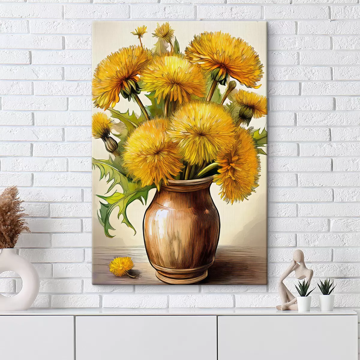 Obraz púpavy, kytica púpav vo váze, žlté púpavy Nr. s40418