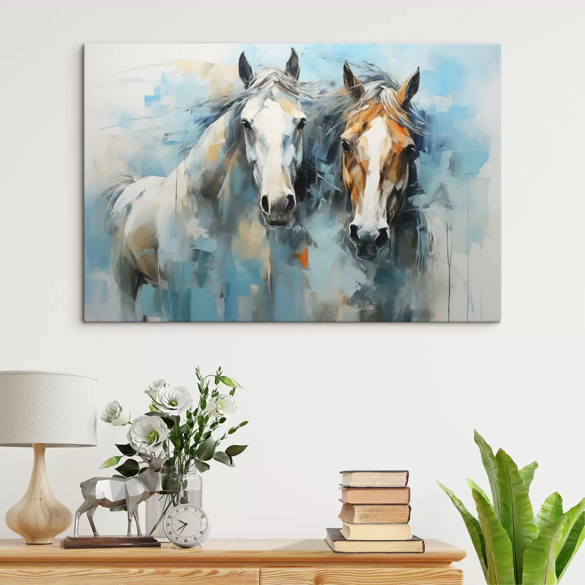 Obraz Kone abstraktná maľba, biela, modrá, hnedá farba Nr. s40493