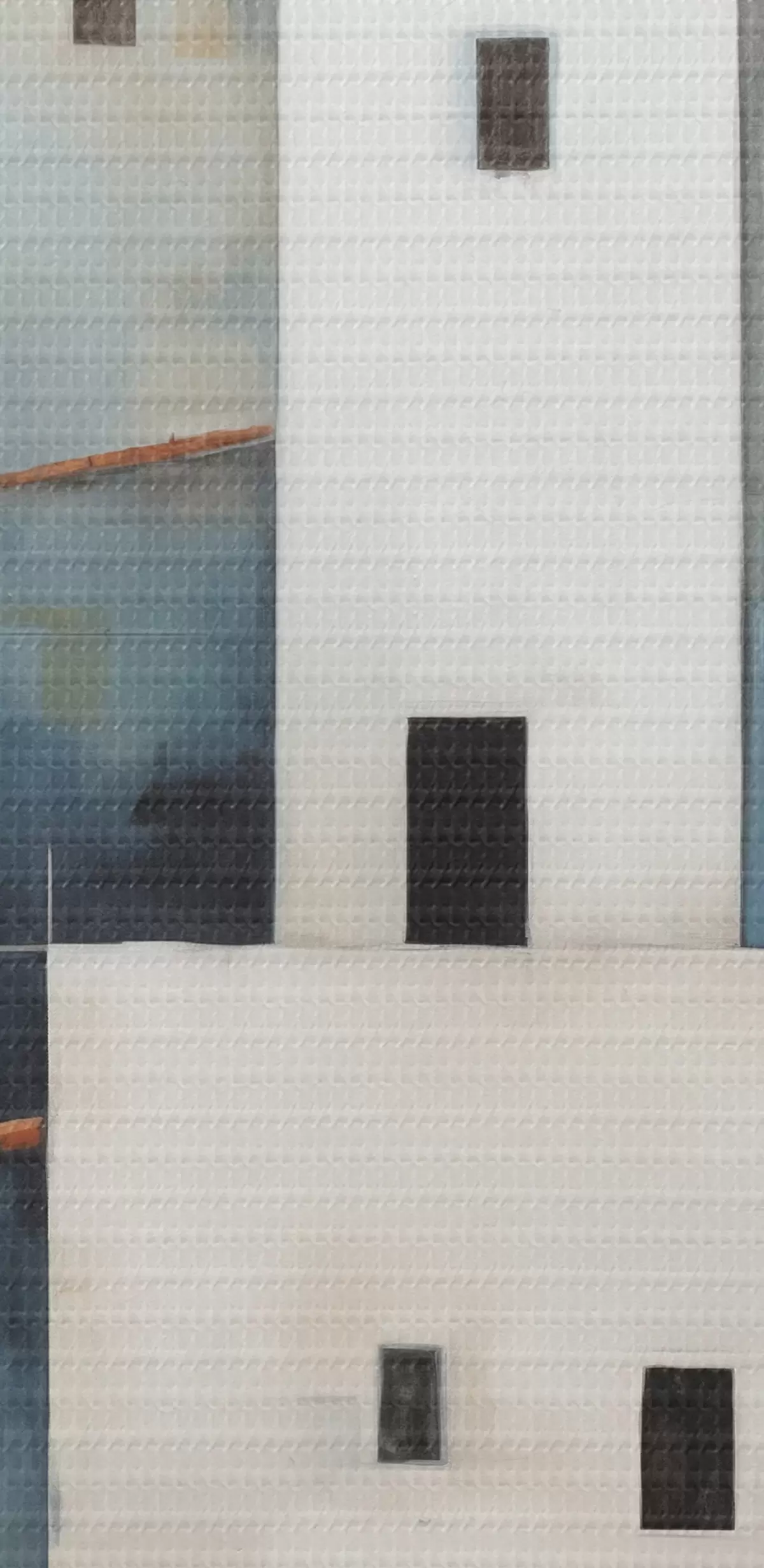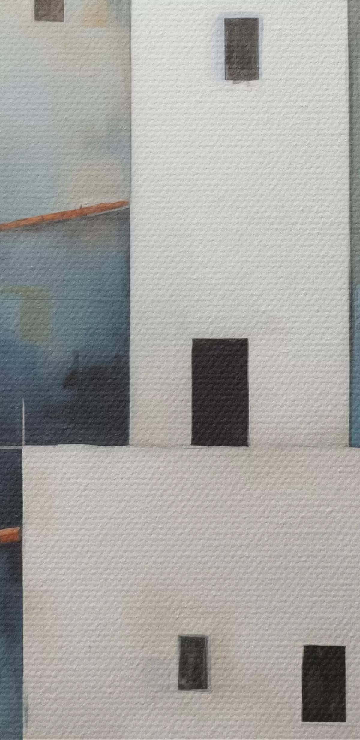Obraz Biele štylizované domy abstraktné, červená, oranžová, žltá, modrá farba Nr. s40531