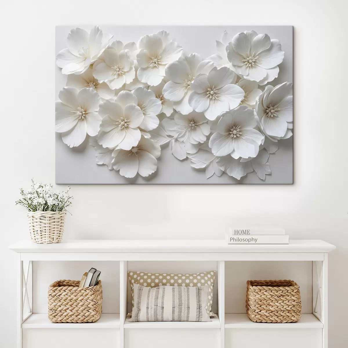 Obraz Biele kvety s jemnými okvetnými lístkami usporiadané do krásneho kvetinového vzoru na svetlom pozadí Nr. s40548