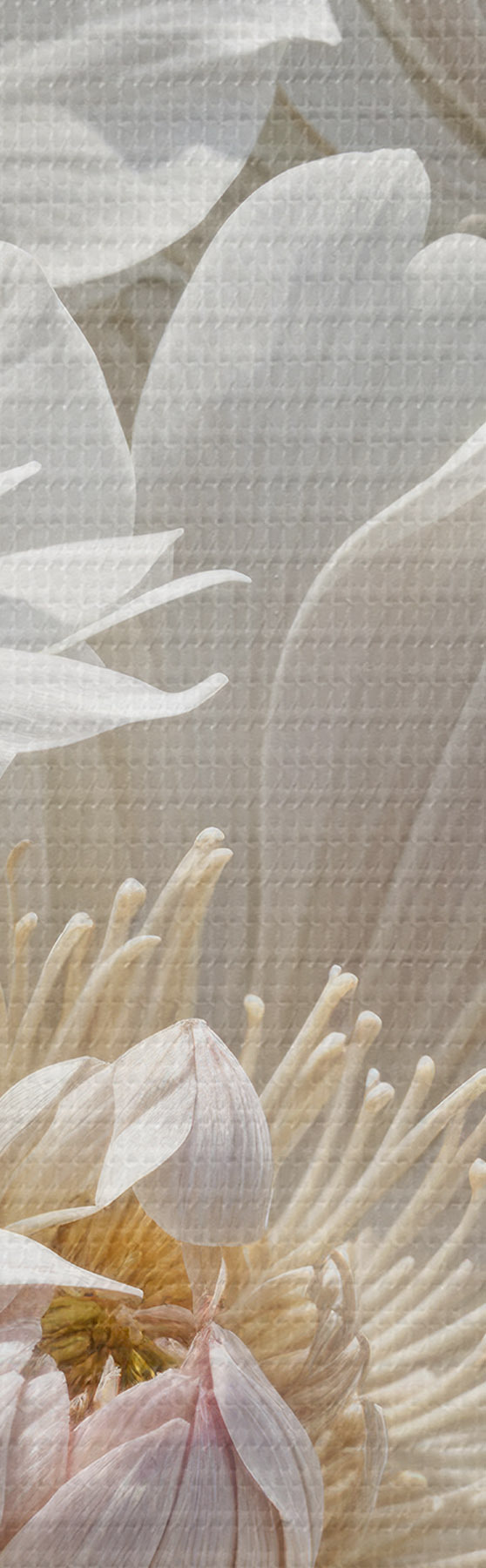 Obraz Detail niekoľkých veľkých bielych kvetov pivonky s jemnými, jemnými okvetnými lístkami a bledožltými stredmi Nr. s40575