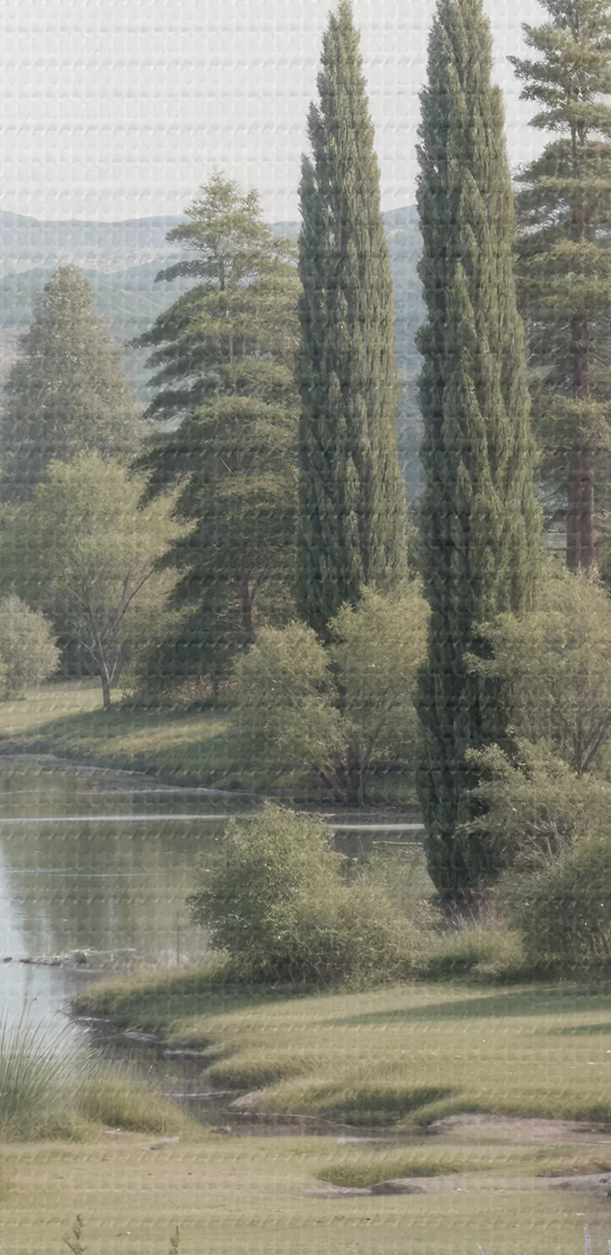 Obraz Pokojná krajina s pokojným jazerom obklopeným borovicami, cyprusmi a ďalšou bujnou vegetáciou Nr. s40579