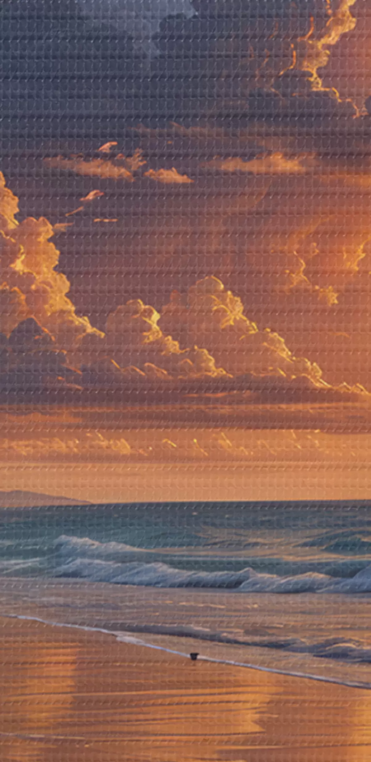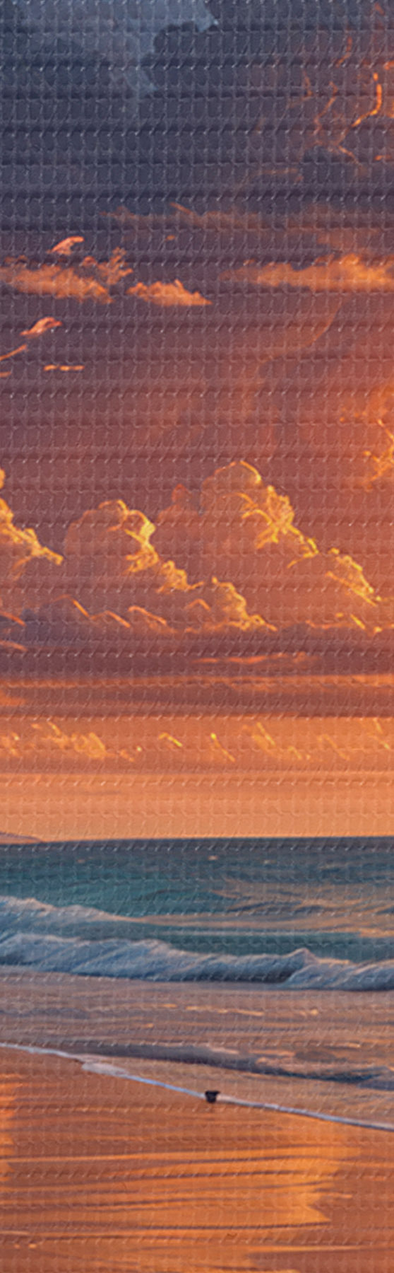 Obraz Dramatický západ slnka nad tropickou plážou so žiarivými oranžovými a ružovými mrakmi odrážajúcimi sa v pokojnej vode Nr. s40599