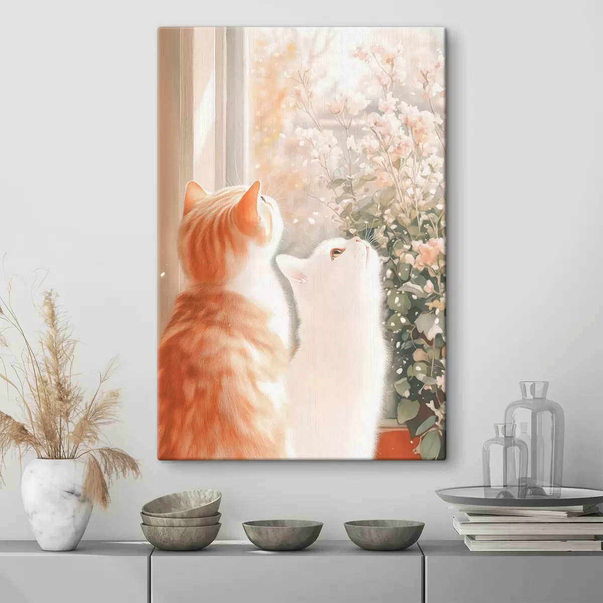 Obraz Ilustrácia ceruzkou a akvarelom zobrazujúca dve rozkošné mačky sediace spolu Nr. s40670