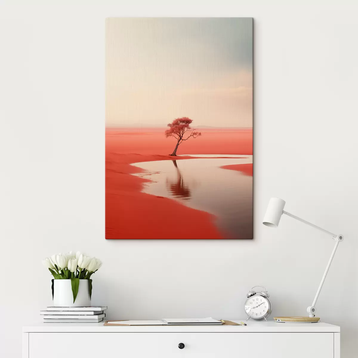 Obraz Minimalistická krajina strom pri rieke, červená, sivá farba Nr. s40722