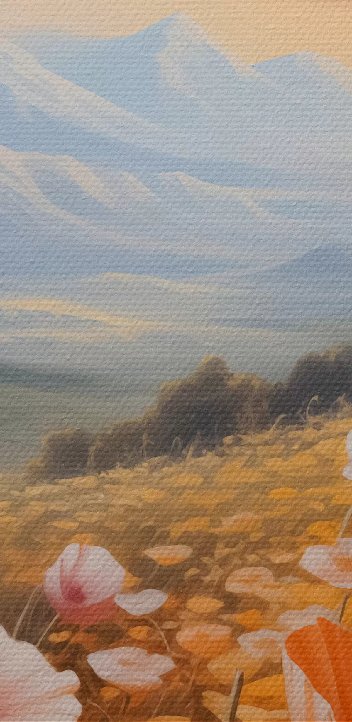 Obraz je možné zavesiť ihneď po jeho prevzatí. Obraz bude napnutý na drevených nosidlách so šírkou 2 cm.