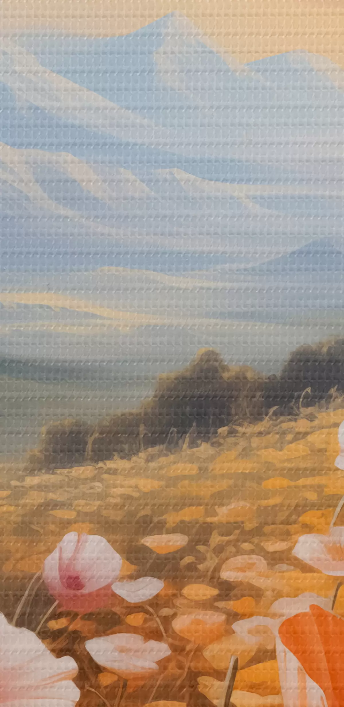 Obraz Makové pole na úsvite s horami v pozadí Nr. s40730