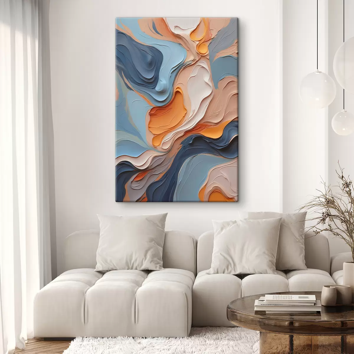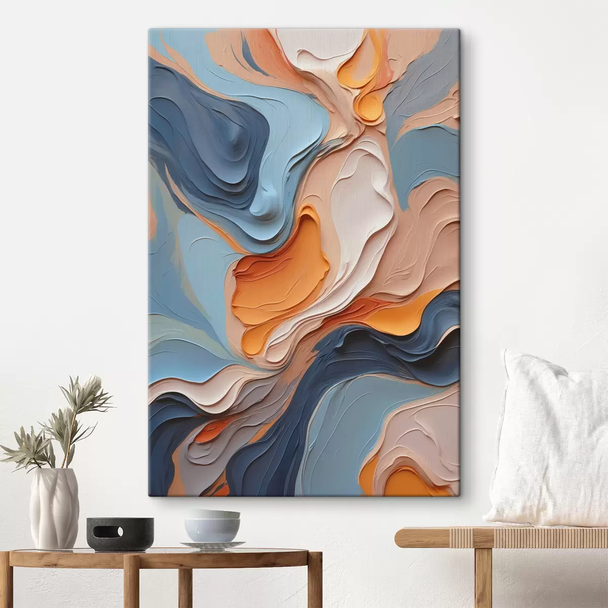 Obraz Abstrakcia v modrých a oranžových odtieňoch s imitáciou textúry Nr. s40743