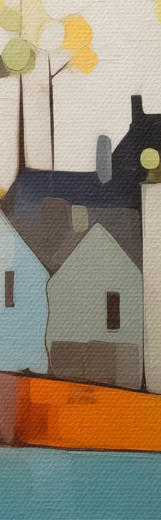 Obraz Abstraktné mesto a domy, modrá, žltá, červená farba Nr. s40751