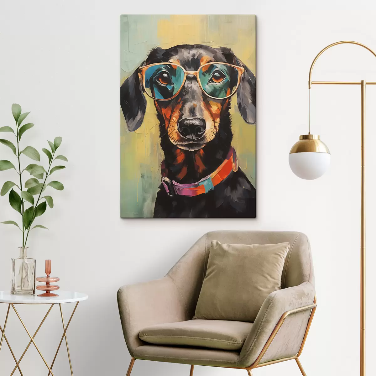 Obraz Portrét čierneho jazvečíka s okuliarmi Nr. s40803