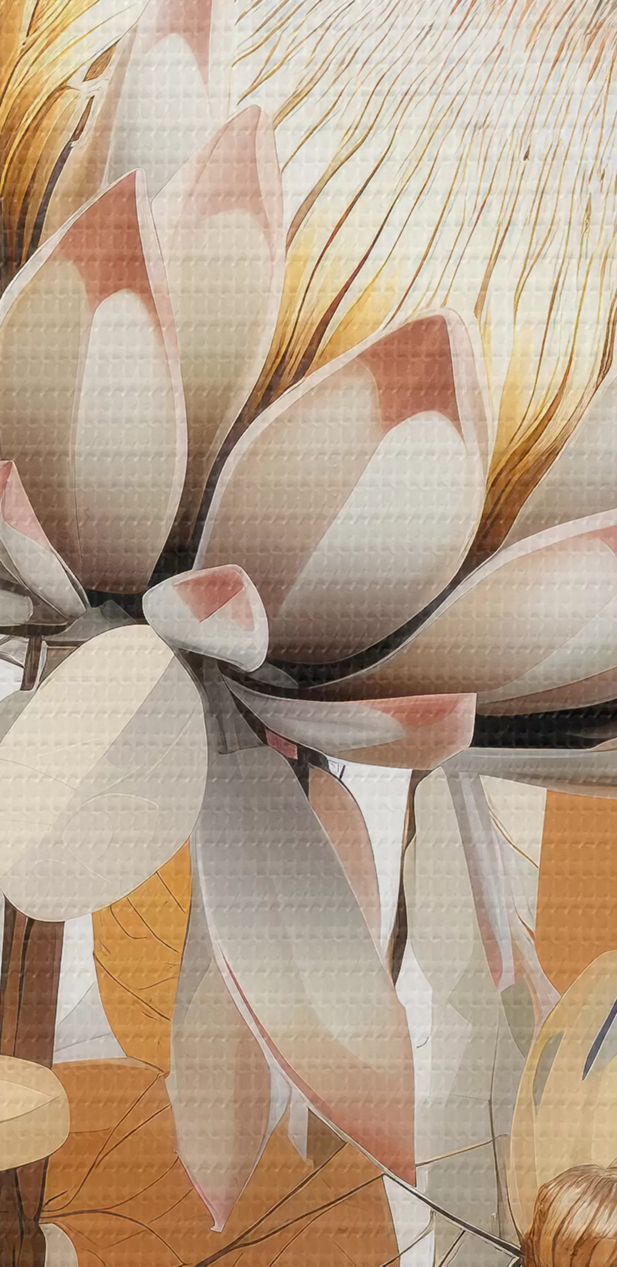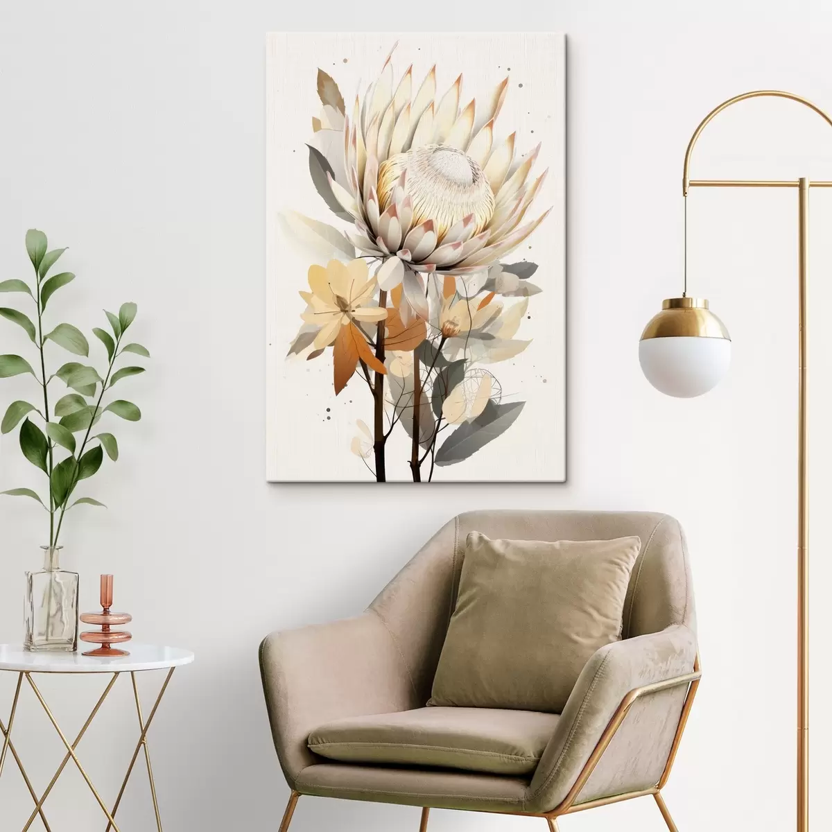 Obraz Krásne kvety protey so sviežimi listami, jemné béžové farby, bavlna Nr. s40817
