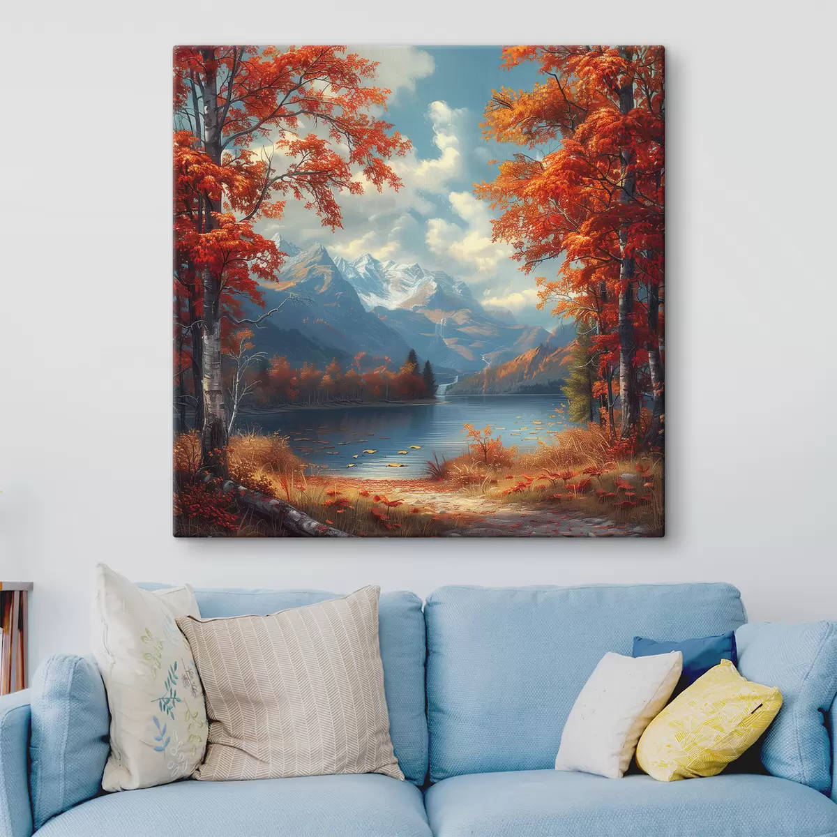 Obraz Jesenná krajina na pozadí hôr pri rybníku Nr. s40903