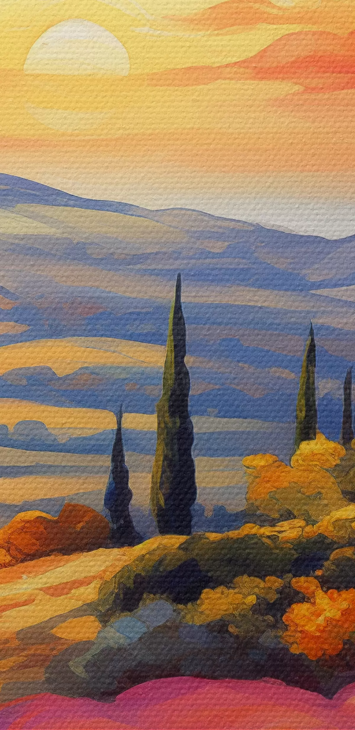 Obraz Toscana západ slnka, levanduľové polia, krásna krajina, akvarel Nr. s40942